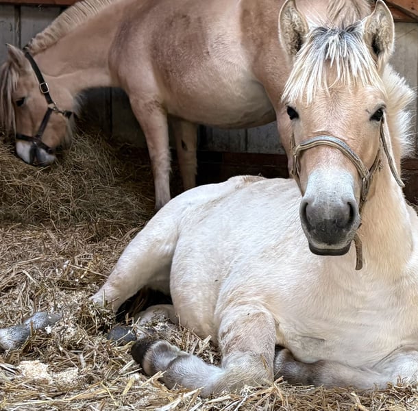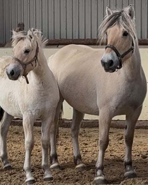Three (4) Norwegian Forest Horses for sale. - Very attractive and sweet 6-year-old Norwegian mare with good pedigree (MOSEGÅRDENS HAUGE / GOLF GUDENÅ) and her 6-month-old filly are looking for a new home. Approximate height: 1.44 m. The mare is currently pregnant by the same stallion (DIRCH SKOVÅ). Accustomed to outdoor paddock keeping and compatible within the herd. Very people-oriented and friendly. She was ridden before her pregnancy. Price for the pregnant mare and foal together: €7,900 Pregnant mare alone: €5,900 Foal: €2,900 - Beautiful, friendly 1.5-year-old Norwegian gelding with papers. Sire: Model Skovå Dam: Malik Klattrup Very people-oriented and friendly. Compatible within the herd and raised in a mixed herd in an outdoor paddock environment. He has full papers and will reach approximately 1.45 m at full height. Price: €2,900 To be sold to a good home.