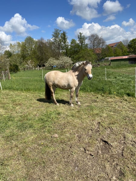 For sale: charming Fjord pony gelding, born in 2016, with a height of 146 cm. This affectionate and well-trained leisure horse impresses with its balanced nature and versatility. He is friendly in handling, reliable in the field, but not suitable for beginners or children, as he can occasionally be a bit spooky. Although he is quite sturdy at 146 cm, he is not a heavy-weight horse. He is well-behaved at the vet and with the farrier and has never had any health issues so far. He is only being offered due to my lack of time, as I can no longer give him the attention he deserves. A suitable home without ambitions for competitive riding is sought, where he can stay forever and not become a wandering trophy. Not suitable for riding schools, dealers, or as a children's pony.