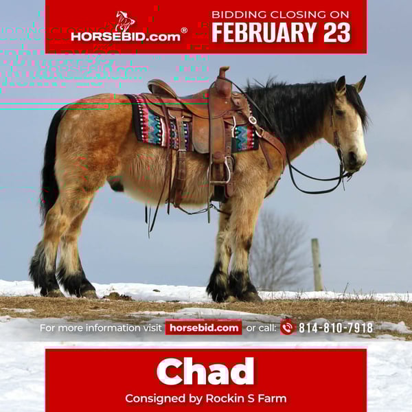 💎 𝐓𝐇𝐄 𝓓𝓲𝓪𝓶𝓸𝓷𝓭 𝐒𝐇𝐎𝐖𝐂𝐀𝐒𝐄 💎 Happening now thru MONDAY | FEBRUARY 23rd - Available EXCLUSIVELY on HorseBid's website! For more details and to register visit: www.Horsebid.com CONSIGNOR CONTACT: Rockin S Farm 814-810-7918 LOCATION: Rebersburg, PA BREED: Fjord cross REGISTERED: No REGISTERED NAME: Chad COLOR: Buckskin HEIGHT: 13.2 AGE: 13 GENDER: Gelding 💥💥 Chad 💥💥 As unique and individual as you will find! We are honored to be able to offer you this gorgeous buckskin Fjord cross! A rare find in the buckskin color that is very easy on the eyes and is also very well broke to ride and drive, he drives super nice in a team as well with his full brother Charlie also listed on horsebid, if you are looking for a team that have been there and done that check out Charlie and Chad , they've been driven in parades and used to haul manure and make hay , so they've been exposed to most anything possible! Chad rides excellent out on the trails and will go wherever you point him without hesitation he will step over logs and go through creeks, he's been ridden in traffic with no issues whatsoever, he is friendly and easy to get along with, he would be a perfect candidate for a lesson program or beginner horse or your very own heart horse with his friendly personality and easy going disposition plus he's a handy size that's built Stout enough to carry any rider, he will also ride in the arena and has a Smooth walk-trot-canter and safe for all ages from children to adults Chad and Charlie are really dream horses that don't come along very often especially not in the fancy buckskin color so don't miss your chance ! Chad sells 100% sound and requires no maintenance, he is healthy and up-to-date on farrier and dewormer as well as a current Coggins and health certificate ready for his forever home We are happy to assist in arranging transportation anywhere in the US If you have any questions on Charlie or Chad please feel free to call Sam 814-810-7918, we are happy to have you come meet him or answer any questions you have