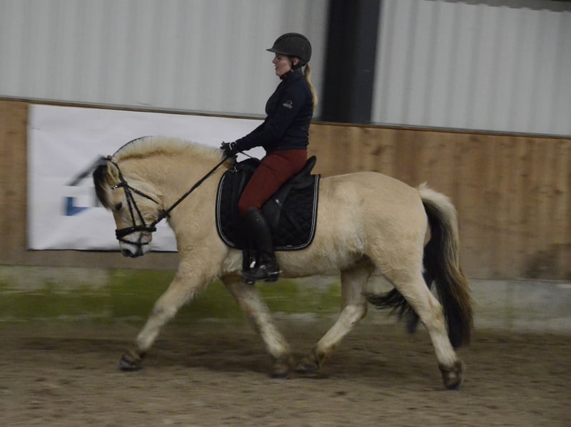 Tio ist unser schicker und freundlicher Fjordwallach. Er ist 5 Jahre alt (08/2021) und ca. 1,43m groß, mit seinem kräftigen Fundament und guter Gurtentiefe deckt er sehr gut ab. Er verfügt über drei überdurchschnittlich gute Grundgangarten. Tio stammt aus unserer familiären und qualitätsvollen Fjordpferdezucht- er kommt also aus aller erster Züchterhand. Sein Vater ist der Bundesprämienhengst Trollfin, er war Siegerhengst der norwegischen Körung und Siegerhengst der fn Bundeshengstschau 2022. Sein Großvater ist unser selbstgezogener Elitehengst Isidor. Tio wurde von uns schonend angeritten und lässt sich in allen 3 Grundgangarten sicher reiten. Er hat viel Spaß bei der Arbeit und ist immer motiviert. Er ist leichtrittig, hört auf feine Hilfen und geht fleißig vorwärts. Tio geht sicher ins Gelände und ist unerschrocken im Straßenverkehr. Er kennt neben der Dressurarbeit bereits Stangenarbeit und macht kleine Sprünge unterm Reiter. Wenn Sie mehr zu Tio erfahren möchten, rufen Sie uns gerne an! (Mobil: 01575 39 37 559 oder Festnetz 04535 2377)