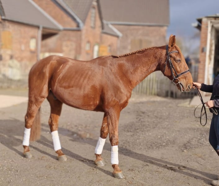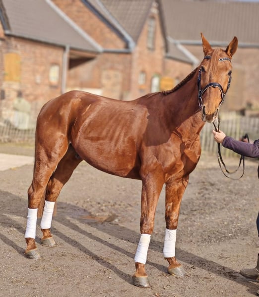 French Trotter Gelding for Sale For sale is a affectionate French Trotter gelding, born in 2017. The chestnut is a friendly and well-balanced horse with a height of 1.58 meters. He has finished his racing career and is now looking for new challenges. He is gentle both in the terrain and in handling. He doesn’t bolt when ridden and is manageable even for my 12-year-old daughter (see the last two videos). He still needs to learn some things under saddle but is quick to understand. Due to his calm and fearless nature, I can also easily see him in harness. If you are interested or would like more information, please feel free to contact me. Viewing is possible by appointment.