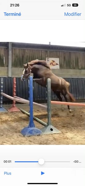 Poney Français de Selle à vendre. Jument née en 2020, de couleur alezane brûlée. Taille : 148 cm. Spécialisée en saut d'obstacles.