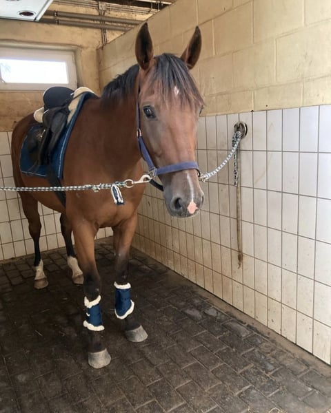 Zuverlässiger Freizeitpartner mit sehr guter Grundausbildung sucht Bestplatz Aufgrund der Dringlichkeit sehr faire Preisklasse. Zum Verkauf steht ein 12jähriger brauner Wallach, ca 1,60 m groß, aus gesundheitlichen Gründen meinerseits Ein zeitnaher Verkauf ist daher leider erforderlich. (Bitte keine weiteren Anfragen zur eine Verfügungstellung. Danke ) Der Wallach ist ein brav gerittenes, erfahrenes Freizeitpferd. Er ist leicht in der Hand und „hält brav das Köpfchen hin“ und eignet sich dadurch auch hervorragend für schwächere Reiter. ✔️Sehr gute Grundausbildung ✔️reagiert fein auf Schenkel- und Gewichtshilfen ✔️Lektionen wie Schenkelweichen, Kurzkehrt u. a. sicher abrufbar ✔️brav in der Abteilung, auch mit Hilfszügeln ✔️kennt Stangenarbeit (kein Springpferd) Er ist geländesicher in der Gruppe und war bereits in der Hauptsaison in Renesse sowie am Strand sicher unterwegs. Auch turniererfahren (Abgabe erfolgt als Freizeitpferd): ✔️Schleifengarant auf WBO-Turnieren ✔️“liefert zuverlässig ab“ Im Umgang unkompliziert: ✔️schmiede- und verladefromm ✔️läuft barhuf mit guter Hornqualität Videos sende ich bei seriösem Interesse gerne zu. Probereiten berechnen wir mit 25 €.Müssen vor dem reiten bezahlt werden. Ein ehrliches, gut ausgebildetes Pferd für Reiter, die einen verlässlichen Partner für den Freizeitbereich suchen.