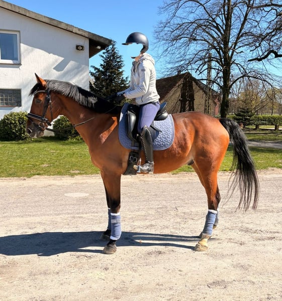 Zuverlässiger Freizeitpartner mit sehr guter Ausbildung sucht Bestplatz Zum Verkauf steht ein 12-jähriger brauner Wallach mit einem Stockmaß von ca. 1,60 m. Der Verkauf erfolgt schweren Herzens aus gesundheitlichen Gründen, weshalb ein zeitnaher, aber passender Platz für ihn gesucht wird. Er ist ein ehrliches, brav gerittenes und erfahrenes Freizeitpferd, das sich durch seine angenehme Rittigkeit besonders auszeichnet. Durch seine leichte Anlehnung und sein ausgeglichenes Wesen ist er auch für weniger kraftvolle Reiter sehr gut geeignet. Ausbildung & Eigenschaften: ✔️ sehr gute Grundausbildung ✔️ feine Reaktion auf Schenkel- und Gewichtshilfen ✔️ Lektionen wie Schenkelweichen und Kurzkehrt sicher abrufbar ✔️ brav in der Abteilung, auch mit Hilfszügeln ✔️ kennt Stangenarbeit (kein Springpferd) Im Gelände zeigt er sich absolut zuverlässig, besonders in der Gruppe. Auch Turniererfahrung ist vorhanden: ✔️ erfolgreich auf WBO-Turnieren ✔️ stets zuverlässig und leistungsbereit (Abgabe erfolgt jedoch als reines Freizeitpferd) Im Umgang: ✔️ schmiede- und verladefromm ✔️ unkompliziert im täglichen Handling ✔️ barhuf mit guter Hornqualität Probereiten ist nach vorheriger Terminabsprache möglich und wird mit 25 € berechnet (vorab zu entrichten). Nicht an Anfänger oder ängstliche Reiter, möchte gearbeitet werden Reitvideo vorhanden Keine AKU vorhanden/ keine vorerkrankungen bekannt Aufgrund der Dringlichkeit wird er in einer sehr fairen Preisklasse abgegeben. Daher auch Verhandlungsbasis Platz vor Preis. Es wird ausdrücklich ein liebevoller Endplatz gesucht.