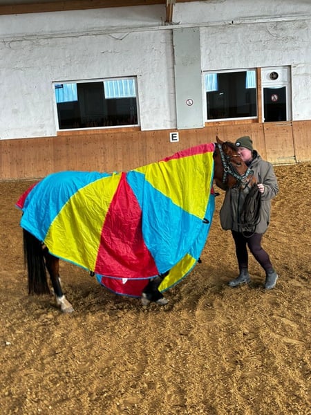 Nevada ist eine neugierige Freibergerstute die sehr intelligent ist und beschäftigt werden möchte. Sie sucht immer die Nähe zum Menschen und ist verschmust, allerdings steckt auch ein kleiner Panzer in ihr. Deshalb ist konsequenter Umgang sehr wichtig. Wir fangen zur Zeit behutsam mit der Ausbildung an. Das erste Freispringen hat ihr sehr viel Spaß gemacht und zeigte ein gutes Talent am Sprung. Nevada war bereits als Handpferd mit im Gelände und zeigte sich da freibergertypisch cool und unerschrocken. Ich verkaufe Nevada in erfahrene Hände zum selbst ausbilden. Bleibt sie zur weiteren Ausbildung hier , steigt der Preis entsprechend. Findet sich aktuell nicht der richtige Besitzer bleibt Nevada bis zum Feldtest am 2.10.2026. Aber das kann natürlich individuell abgestimmt werden