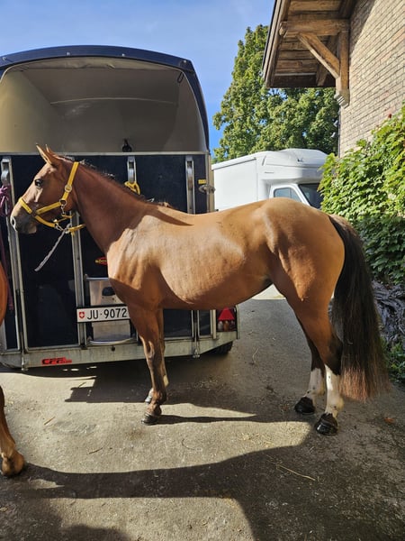 À vendre en raison de manque de place et de temps Jument freiberge de 4 ans Actuellement environ 1,53 m Jeune cheval très sociable avec beaucoup de potentiel Obéissante et respectueuse au manège, déjà sous la selle En bonne santé, régulièrement vaccinée et vermifugée Convient à une personne souhaitant former son propre cheval