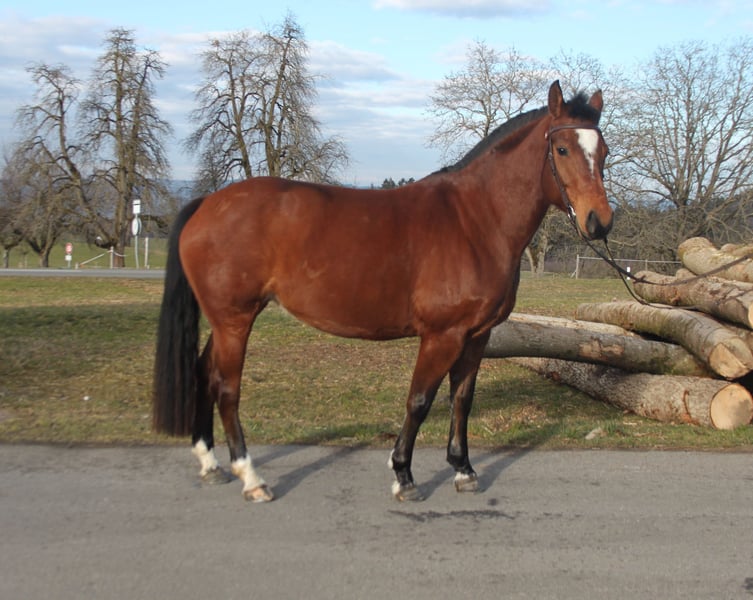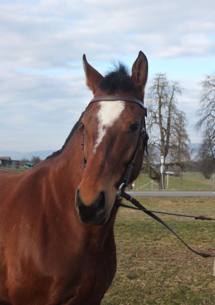 Liebe und brave Freibergerstute, Sie ist top verkehrssicher, unerschrocken und nicht guckig. Im Gelände kann sie von Kindern und Jugendlichen in der Gruppe geritten werden. Auch alleine ausreiten ist für sie kein Problem.Die Stute ist auch sehr viel gefahren. Im Umgang ist sie unkompliziert und tadellos - Kinder können sie führen, putzen, selber Hufe auskratzen sowie auch zum reiten bereit machen. Einfach zum verladen sowie beim Hufschmied. Die Stute hatte letztes Jahr ein dunkles Fohlen - jetzt ist sie tragend von Navarino. Sie ist sich einen lebhaften Landwirtschaftsbetrieb mit grossen Maschinen und Traktoren, spielende Kinder sowie viele verschieden Tiere gewohnt.