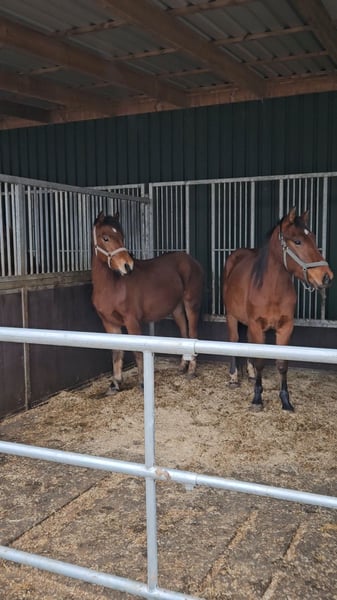 Zum Verkauf aus der Schweizer Zucht, jetzt in den Niederlanden zur Besichtigung: Ein sehr schönes Gespann aus zwei zweijährigen Freibergern mit identischen Abzeichen (wir müssen an der Trense erkennen, wer welches Pferd ist). Beide sind braun mit kleinen Sternen und hinten zwei weißen Füßen. Gutmütige, gesunde Pferde! Der angegebene Preis bezieht sich pro Pferd.