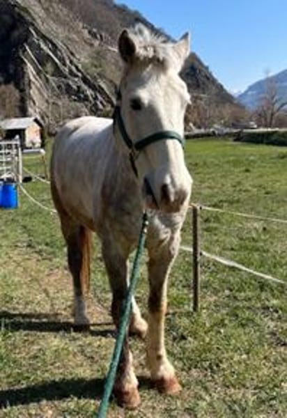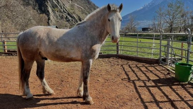 Freiberger Wallach „Hardy" – klug, verspielt und mit viel Potenzial Hardy ist ein 2020 geborener Freiberger Wallach (Schimmel, ca. 155 cm), der einen ganz besonderen Charakter mitbringt. Seine Mutter ist Safira von der Pferdezucht vam Mondji in Bitsch, sein Vater ist Hydromel. Charakter & Umgang Hardy ist ausgesprochen menschenbezogen und baut eine tiefe Bindung zu seiner Bezugsperson auf. Er ist herzlich, intelligent und lernwillig – testet aber auch gerne seine Grenzen. Er braucht daher eine klare, konsequente Führung und einen sicheren Umgang. Kein Anfängerpferd, sondern ein Pferd für eine erfahrene, motivierte Person. Ausbildung Altersentsprechend gearbeitet. Hardy bringt echtes Talent für die Dressur mit und verfügt über für einen Freiberger sehr schöne, schwungvolle Gänge. Erste Erfahrungen im Springen wurden bereits gesammelt – mit sichtlicher Freude und Vermögen. Tricks & Kopfarbeit Durch seine hohe Auffassungsgabe benötigt er regelmässige Kopfarbeit und Abwechslung. Er kennt bereits Tricks wie „Smilen" und das Apportieren eines Balles – und lernt begeistert Neues. Unter dem Sattel Aufmerksam und entspannt von der Art, bleibt er jedoch ein sensibles Pferd, das fein geritten werden möchte. Was wir uns wünschen Einen erfahrenen, motivierten Menschen, der Freude daran hat, mit einem cleveren Pferd zu arbeiten und ihn sowohl körperlich als auch geistig zu fördern.