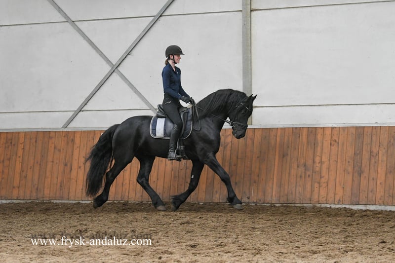 A cheerful, friendly horse with a heart of gold! Tijger is a beautiful, luxurious stallion with a strong presence. In addition to his attractive appearance, he also has good conformation and expressive, spacious movements. Tijger has been under saddle for some time and adapts easily to work. He is forward-going, always eager to move, but not hot or nervous, which makes him a pleasure to work with! Tijger is a horse that consistently gives his best. In handling, Tijger is a true cuddle buddy—a horse with a wonderfully cheerful, playful, and friendly personality. Who would be lucky enough to make this handsome guy happy? https://www.frysk-andaluz.com/nl/paard/tijger/