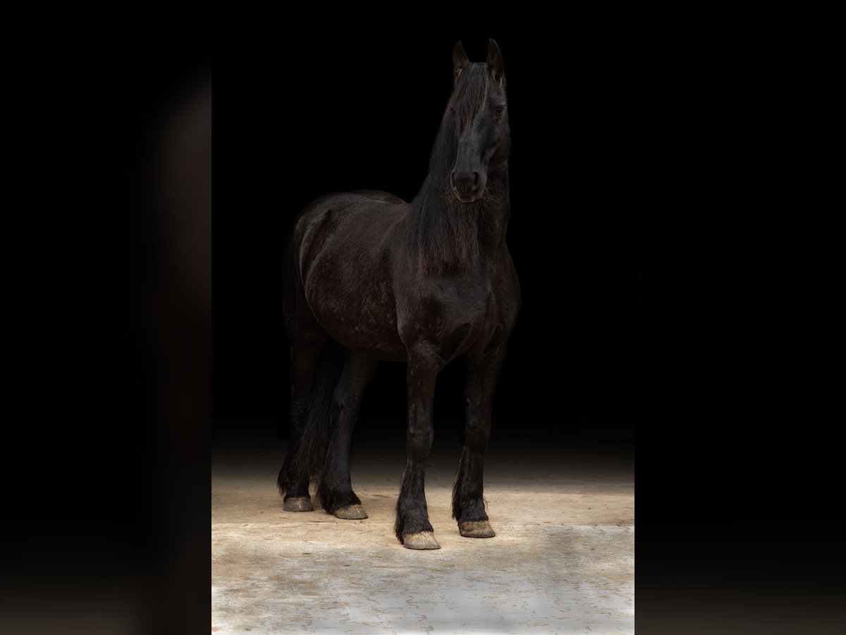 Por motivos personales, pongo a la venta a Annelie Shela K, una yegua frisona de 10 años, con un porte destacado, una melena de ensueño y mucho entusiasmo, pero muy delicada y siempre fácil de manejar. Es muy sociable con las personas, extrovertida y cariñosa. Ella sale de la manada a la llamada y desea trabajar con su jinete. Actualmente mide 1,67 m y pesa 660 kg. Nació en 2016. Pedigree Pier 448 x Mintse 384. Documentación KFPS disponible. Como potra, recibió una excelente primera calificación y proviene de una línea de sangre de primera clase, aunque no ha sido presentada para concursos ni ha tenido crías hasta ahora. Annelie está en mi propiedad desde que tenía 2 años y medio, y la he entrenado yo misma siguiendo principios clásicos y barrocos. Fue montada con mucha paciencia, de forma muy lenta y suave. Ha sido montada en todos los pasos básicos y en las diferentes ayudas laterales en paso, con ejercicios de shoulder-in y renvers en trote. Recientemente se ha comenzado a trabajar el paso español bajo la silla. Es muy delicada en la boca, no se encorva y responde muy bien a las ayudas de asiento y de piernas. Puede ir sola o en grupo al campo, mostrando atención pero siendo fácil de controlar. Desde el suelo, está muy bien entrenada: en cuerda, doble cuerda, "trabajo desde el suelo", activación dual, trabajo con barras, trabajo clásico a mano, zirzética, trabajo en libertad, saltos en libertad, etc. Conoce la cabina en paddock grupal y en paddock libre, siendo muy tolerante y de bajo rango en la manada. Es tranquila para cargar en remolque y hasta ahora siempre ha ido sin problema descalza. Durante el cuidado de cascos, se muestra tranquila. No hay radiografías disponibles, pero la osteópata asegura que las articulaciones y la espalda están en buen estado. Sus dientes se han revisado regularmente, está desparasitad y vacunada completamente y al día. Como es típico en su raza, ocasionalmente presenta problemas de dermatitis o raspa, pero se controlan fácilmente con los medios habituales. No tiene otras limitaciones de salud conocidas. Dado que a veces puede estar un poco sobreestimulada, busco un jinete tranquilo, seguro y que sepa canalizar su energía en la dirección correcta. Quien busque una yegua versátil, motivada y hermosa para paseos exigentes, encontrará en Annelie una compañera ideal. También puede adquirirse todo su equipo si se desea. Prioridad al buen hogar, no al precio.
