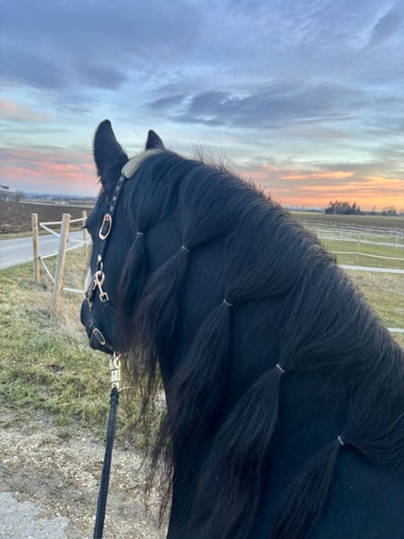 **Sales Advertisement: Beautiful Friesian Mare for Sale** For sale is an elegant Friesian mare, born in 2012. With her impressive height of 154 cm and her typical black coat, she attracts everyone's attention. This baroque beauty captivates not only with her appearance but also with her charming character. She is well-mannered, easy to handle, and is suitable for both experienced riders and horse lovers looking for a loyal companion. The mare is versatile, whether for leisure activities or work in the field – she always shows joy and willingness to perform. If you are interested or need further information, please feel free to contact me. Don’t miss the opportunity to bring such an extraordinary Friesian mare into your life!