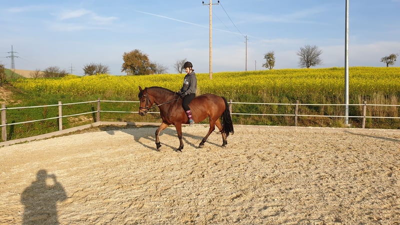 Elegant Friesian-mix mare for sale – perfect for leisure riding! Up for sale is a beautiful chestnut Friesian-mix mare, born in 2012. Standing at 15.4 hh, she impresses with her elegant appearance and wonderful temperament. However, she requires a fair but consistent handler, as she is NOT suitable for beginners. I have ridden her extensively in dressage, and she also enjoys jumping. I have done a lot of groundwork with her, which she found very enjoyable. She needs someone who can ride her regularly, which I am no longer able to do due to the birth of my daughter. She is familiar with the veterinarian and farrier. Not a school horse! If interested or for further information, please feel free to contact me. Viewing and trial rides are possible by arrangement.