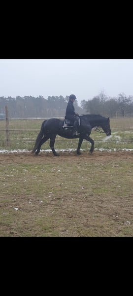 Schweren Herzens habe ich mich dazu entschieden für meine 13 Jährige (2012) Stute ein neues Zuhause zu suchen . Aus familiären und beruflichen Gründen werde ich ihr zeitlich nicht mehr gerecht. Sie ist etwa 164 cm Groß und deckt auch große Reiter sehr gut ab. Fränzi (Lotte genannt) ist eine sehr liebevolle Stute, die es liebt Zeit mit ihrem Menschen zu verbringen. Sie liebt es zu kuscheln und betüddelt zu werden. In der Bodenarbeit ist sie eine sehr motivierte Maus, die immer alles richtig machen möchte und auch gern ihre Tricks abruft. Im Sattel ist sie motiviert, wird aber auch mal schnell. Sie braucht definitiv einen Reiter, der ihr viel Sicherheit gibt und auch Grenzen aufzeigen kann , dabei aber immer fair bleibt. Sie verzeiht Fehler und ist absolut nicht nachtragend. Lotte lief an der Longe auch zuverlässig unter Kindern. Dabei zeigte sie sich immer als sehr vorsichtig und einfühlsam. Sie geht alleine und in der Gruppe ins Gelände, wo sie die schnelleren Gangarten bevorzugt. Bocken, steigen oder kopflos werden kennt sie nicht. Sie ist regelmäßig beim Schmied, bei dem sie immer super artig ist. Beim Verladen braucht sie gewisse Überzeugung , steht dann aber ganz lieb. Sie wird ebenso regelmäßig Zahnarzt, Physio und Chiro vorgestellt. Aufgrund meines Zeitmangels ist sie schon einige Zeit nicht viel geritten worden, wird aber aktuell wieder angeschoben. Sie steht seit Fohlen an im Offenstall, das sollte auch so bleiben. Sie ist im Rang immer mittig bis hoch gewesen , auch als Chefin nie böse . Aus Streitigkeiten in der Herde hält sie sich raus und nimmt neue Pferde immer sehr freundlich auf. Lotte kennt alle Alltagsgeräusche . Trecker, Hunde, Kinder , Regio, Kühe, Ziegen, Hühner etc sind kein Problem für sie. Bisher war sie noch nie krank. Bei Fragen gerne melden. Platz vor Preis !