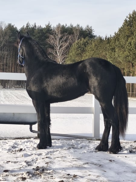 Witam, mam do sprzedania Piękną 1,5 roczną klacz Fryzyjską. Posiada paszport i rodowodu Holenderski ,,Główna Księga Stadna KFPS" To elegancka klacz fryzyjska o kruczoczarnej, lśniącej sierści i przyjaznym usposobieniu, oprócz pięknego wyglądu ma też przepiękny ruch w trzech chodach. Który wyróżnia ją na tle innych koni. To dobrze zapowiadającą się klacz która ma duże szanse zostać STER! Klacz jest nauczona prowadzania na uwiązie, podawania nóg i zabiegów pielęgnacyjnych. Jest codziennie padokowana z innymi konimi Zainteresowanym mogę wysłać filmy na Whatsapp. Zapraszam do kontaktu po więcej informacji po nr. tel. +48691277640
