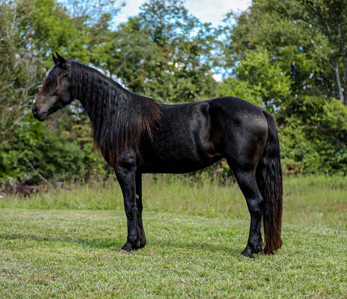♦️ 𝐭𝐡𝐞 𝐀𝐌𝐄𝐑𝐈𝐂𝐀𝐍 𝓕𝓪𝓵𝓵 𝓒𝓵𝓪𝓼𝓼𝓲𝓬 ♦️ Happening now thru MONDAY | OCTOBER 20th - Available EXCLUSIVELY on HorseBid's website! For more details and to register visit: www.Horsebid.com CONSIGNOR CONTACT: J&S Livestock J.T. 931-698-7159 or Bailey 931-242-7226 LOCATION: Santa Fe, TN BREED: Friesian Sport Horse REGISTERED: Yes REGISTERED NAME: Arabella COLOR: Black HEIGHT: 15.1 AGE: 8 GENDER: Mare Arabella, a 2017 model registered Friesian Sport Horse mare standing 15.1 hands tall is the true definition of beginner safe, and a true sweetheart! If you are looking for a safe, dependable and drop dead gorgeous mare you can count on to be the same horse every single day, then Arabella would fit perfectly into your program. We have trail rode her extensively and have had many different levels of riders on her back, who all have thoroughly enjoyed their time with her. Take her through the water, cross fallen down trees or take her up or down a steep incline- wherever you point her is where she’ll go. She has that naturally gentle, kind demeanor literally anyone would be able to get along with. Shes calm and levelheaded, sure footed and most of all safe for anyone looking for a beautiful, kind mare that’s trustworthy. She stands perfectly to be tacked and mounted, loves a bath and to be groomed on as well. She does well being turned out or stalled. We truly can’t say enough good things about this mare. She has a current coggins and a recent PPE. We’d love to talk to anyone interested in Arabella- call or text Bailey 931-242-7226 or J.T. 931-698-7159