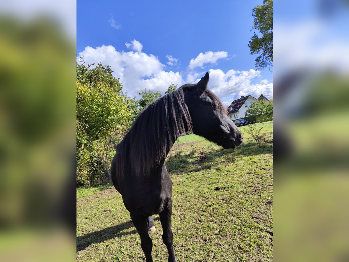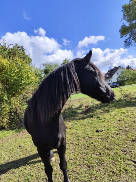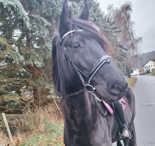 Verkaufe wunderschönen Friesenmix-Wallach Zum Verkauf steht ein eleganter Friesen-Wallach, geboren im Jahr 2015. Der Rappe besticht durch sein edles Erscheinungsbild und seine beeindruckende Präsenz. Mit einem Stockmaß von 167 cm bietet er die perfekte Größe für Freizeit und Hobbyreiten. Der Wallach ist freundlich, gut im Umgang und vielseitig einsetzbar. Er ist eher der gemütliche Typ in Halle und Platz. Mag Ausritte mit Gesellschaft anderer Pferde sehr gerne. Er ist sportlich, schlank gebaut. Springen bereitet ihm ebenfalls Freude, wurde nicht aber nicht weiter gefördert. Reagiert fein auf klare Hilfen, absolut anhänglich. Benötigt einen Reiter der ihm Sicherheit vermittelt. Er kennt offenstall, sowie nachts Box. Große Herden stressen ihn, da eher rangniedrig. AKU kann bei kostenübernahme gerne durchgeführt werden. Er war bisher nie krank oder lahm, Barhuf. Bei Interesse und für weitere Informationen stehe ich gerne zur Verfügung. Ein Kennenlernen vor Ort ist nach Absprache möglich.