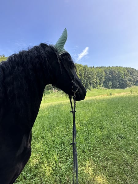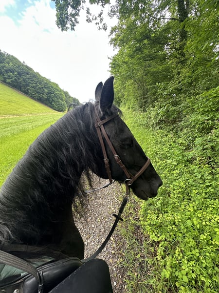 Schweren Herzens suche ich für meinen Friesen ein neues Zuhause, da es mir zeitlich und finanziell leider nicht mehr möglich ist, ihm gerecht zu werden. Diese Entscheidung fällt mir unglaublich schwer, weshalb für mich eines ganz klar ist: Der richtige Platz steht absolut vor dem Preis. Er lebt derzeit in Offenstallhaltung und wird nur an einen Platz mit derselben Haltungsform abgegeben. Mein Herzenspferd wird gebisslos geritten und ist barhuf, was auch so bleiben soll. Er ist ein lerndurstiges, intelligentes und feinfühliges Pferd, das gerne arbeitet und dabei viel Freude zeigt. Er kennt Reiten in der Halle und im Gelände, ist sicher auf langen und kurzen Ausritten, sowohl alleine als auch in der Gruppe. Ausserdem beherrscht er Longieren, Doppellonge, Bodenarbeit (inkl. Klickertraining) und Dressur vom Boden. Er ist nicht schreckhaft, wenn er seinem Menschen vertraut – er lebte sogar an einer Autobahn und bleibt ruhig in allen Lebenslagen. Besonders liebt er es, im Wasser zu spielen, egal ob im Fluss oder See. Ich wünsche mir für ihn eine einfühlsame, konsequente und liebevolle Person, die ihm mit Geduld, Zeit und Herz begegnet und weiter mit ihm arbeitet, um sein grosses Potenzial zu fördern. Er soll kein Reitschul- oder Turnierpferd werden, sondern ein geschätzter Freizeitpartner, der in seinem neuen Zuhause ankommen darf. Das zukünftige Zuhause möchte ich mir persönlich anschauen. Es ist mir auch wichtig, die Möglichkeit zu haben, ihn gelegentlich zu besuchen oder bei Bedarf eine Ferien-Ablösung zu übernehmen, einfach um weiterhin ein kleines Stück an seinem Leben teilhaben zu dürfen. Sein komplettes Zubehör – darunter Fellsattel, Zaum, Schabracken, Hufschuhe und weiteres – kann bei Interesse mitgegeben werden. Bitte nur ernst gemeintes Interesse – mir liegt sehr viel daran, dass er in gute, liebevolle Hände kommt.