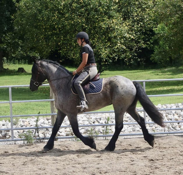⚜ La vente classique HERITAGE ⚜ Se déroule actuellement jusqu’à LUNDI | 11 AOÛT – Disponible EXCLUSIVEMENT sur le site de HorseBid ! Pour plus de détails et pour vous inscrire, rendez-vous sur : www.Horsebid.com CONTACT DU CONSIGNATEUR : Jamie Thomason 270-772-1706 LIEU : Auburn, Kentucky RACE : Croisement Frison/Percheron ENREGISTRÉ : Non NOM ENREGISTRÉ : ELLIOTT COULEUR : Bleu Roan TAILLE : 15,3 hh ÂGE : 4 ans SEXE : Hongre Elliott est un hongre de 4 ans, croisement Frison/Percheron, mesurant solidement 15,3 hh, avec une robe rare et saisissante de couleur bleu roan. Un magnifique mouvement avec une foulée fluide et couvrante, il brille aussi bien en selle qu’en attelage. Extrêmement polyvalent, il a été monté en équitation anglaise et western, a travaillé le bétail à la ferme et a parcouru de nombreux kilomètres en randonnée. Attentif, stable et adaptable, il constitue un partenaire exceptionnel pour une grande variété de disciplines. Elliott aborde la trail comme un vétéran expérimenté. Il traverse l’eau, les ponts, les débris, et navigue prudemment sur différents terrains. C’est un monture agréable, qui se déplace en solo ou en groupe. En ville, nous l’avons même fait descendre Main Street. Il ne se laisse pas perturber par la circulation et est toujours partant pour une rencontre ou une caresse… quelqu’un demande toujours à le caresser ou à prendre une photo. Elliott possède une excellente auto-maintien naturelle, un trot aérien expressif, un galop rythmé en montée, et des transitions fluides. Il canters dans les deux directions sur la bonne allonge, se déplace latéralement, se contrôle facilement avec les pieds et le siège, et a été très volontaire pour passer des obstacles à la maison. Il montre un potentiel pour la dressage ou le concours complet de niveau débutant. Elliott aime la vie de luxe, mais il n’a pas peur d’un peu de travail. Il peut pousser le bétail, ouvrir et fermer les portes, et ne prête pas attention aux vaches errantes. Elliott est également entraîné à la conduite. Il est gentleman derrière la ligne et en toute sécurité dans la circulation. Il a même été conduit à l’église par les enfants. Elliott a suivi une formation de désensibilisation. Il ne se laisse pas troubler par les bâches, est sûr avec les armes à feu et porte le drapeau. Il se sent parfaitement à l’aise dans un box ou en pâture. Il sort en troupeau mixte sans problème. Facile à attraper, à charger et à transporter, il aime la compagnie, adore ses bains, et est un plaisir à avoir dans le box. Il a de beaux pieds noirs, et est actuellement pieds nus. Elliott est un hongre exceptionnel, polyvalent, une monture vraiment amusante, en attente de son prochain compagnon. La base pour progresser dans une discipline spécifique, ainsi que l’expérience pour devenir le compagnon de trail principal de quelqu’un. Achetez en toute confiance ! Elliott a récemment passé un examen de santé et de locomotion avec flexions, sans aucun problème ! Il est à jour dans tous ses soins, vaccinations, et possède toute la documentation nécessaire pour le transport. Si vous avez d’autres questions ou souhaitez rencontrer Elliott avant de l’intégrer à votre famille, n’hésitez pas à nous contacter !