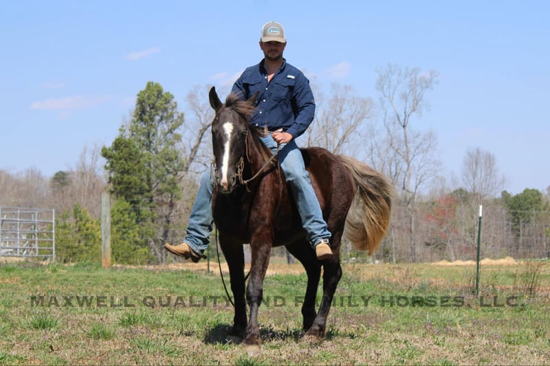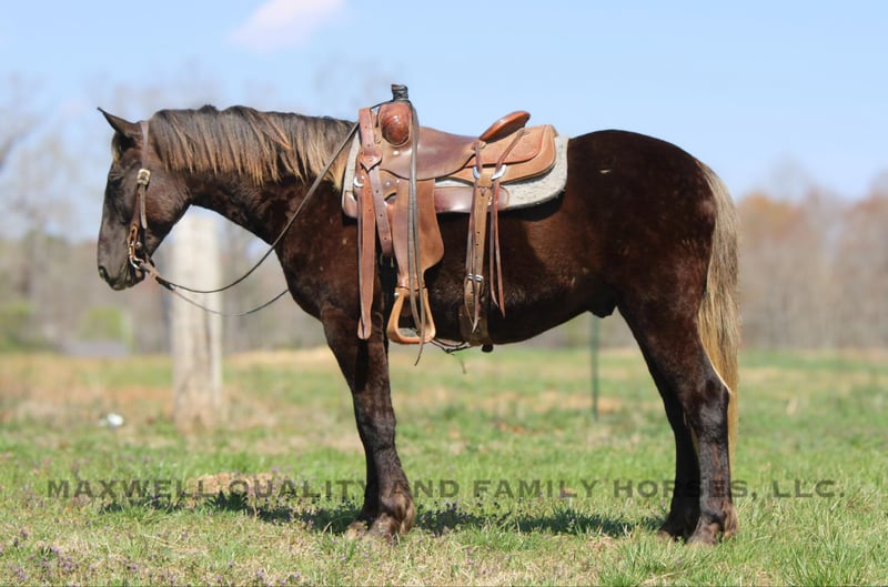 ONLINE AUCTION Place your bids at www.PlatinumEquineAuction.com Starting Bid $3500 Auction ends April 13th, 2025 Need a new saddle? Check out White Rock Saddles on our website or Facebook! Sammy is a 4yr old 14.3h Friesian/Quarter horse cross gelding! Sammy is a very unique Chocolate color with a flaxen mane and tail. He is stocky and built to last. Sammy has a great personality that anyone would love and he is always the first one to greet you in the pasture! He has a very solid wtc that anyone could sit. He takes his leads and lopes nice cirlces. We have taken him on trail rides in the mountains where he will cross anything that you ask from deadfall to creeks to ditches, steep slopes don’t bother him either and also done tons of riding along the side the highway. He will ride Western or English and would be a great horse to go over the rails! Here is a super safe and calm minded gelding!! He is 100% Safe and Sound! We are located in Cherryville, NC if you would like to schedule an appointment to come see him and we can set up delivery anywhere in the US! If you have any questions, would like to facetime call or come see Sammy in person Call or Text Landon with Maxwell Family Trail Horses 704-689-9035. ONLINE AUCTION Place your bids at www.PlatinumEquineAuction.com Starting Bid $3500 Auction ends April 13th, 2025 Need a new saddle? Check out White Rock Saddles on our website or Facebook!