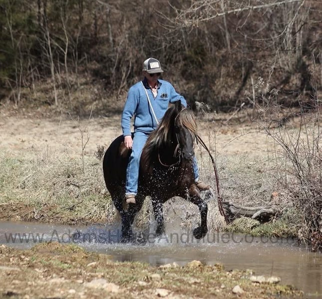 Go to visit our website for more pics and a video. AHAMC has been in the horse business and sold horses over the internet since 2005. We have a long track record of success with hundreds of happy customers. We work hard to match riders with the correct horses and specialize in beginner safe, family friendly horses that have been used and checked out by our family! We can set up transportation anywhere in the US and look forward to working with you. Wow talk about different! Dollar is one of the most unique geldings that you will find! He is a Silver Dapple/Chocolate flax mane and tail registered Friesian Sport Horse, Gelding that is stocky built and is standing around 15H! He is 4 years old with a mind that is wise beyond his years! Dollar has been ridden around the ranch, checked cows and rode fences. He is a laid back type of Friesian horse that will just walk out down the trails with no hesitation. He has been on camping trips and has been ridden by all ages of riders. When out on the ranch or going down the trails he will cross creeks, ditches, logs and navigate rough rocky areas. He is safe in traffic safe whether that be trucks or cars. He walks on a loose rein, has a nice jog, his lope is slow and collected plus he lopes very nice circles on a loose/draped rein! He has been exposed to all kinds of wildlife such as deer or turkey. He is athletic and would be a great horse to put under English tack to go over the rails with. He pastures well with others and rides the same after time off. Dollar is versatile, easy to ride and with a personality that is easy to love! Feel free to call Eric 606-308-2461 with any questions! Go to visit our website for more pics and a video. AHAMC has been in the horse business and sold horses over the internet since 2005. We have a long track record of success with hundreds of happy customers. We work hard to match riders with the correct horses and specialize in beginner safe, family friendly horses that have been used and checked out by our family! We can set up transportation anywhere in the US and look forward to working with you.
