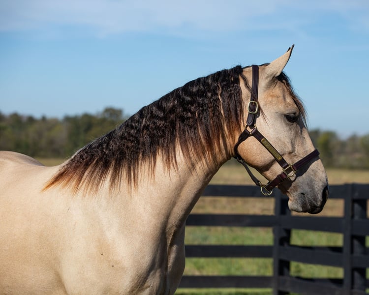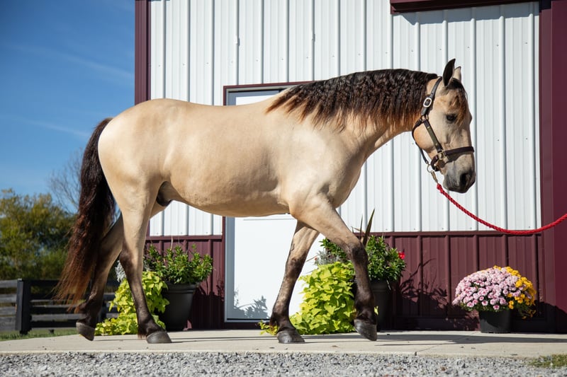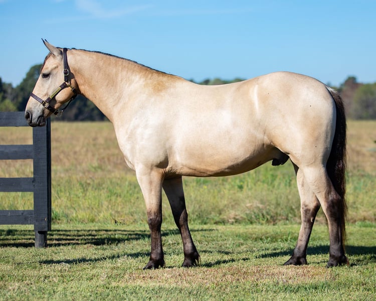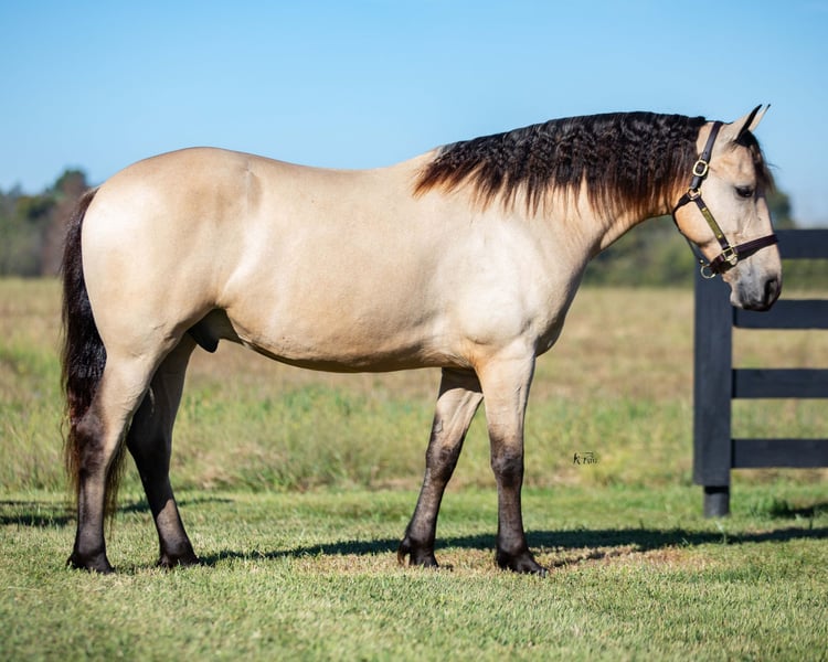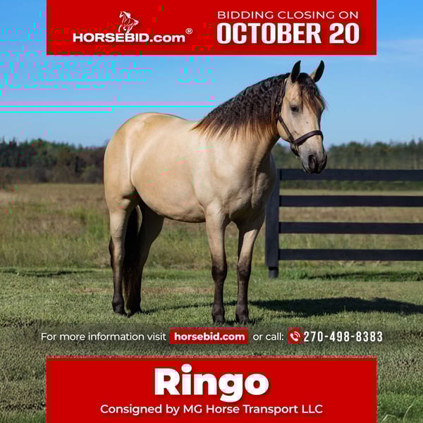♦️ 𝐭𝐡𝐞 𝐀𝐌𝐄𝐑𝐈𝐂𝐀𝐍 𝓕𝓪𝓵𝓵 𝓒𝓵𝓪𝓼𝓼𝓲𝓬 ♦️ Happening now thru MONDAY | OCTOBER 20th - Available EXCLUSIVELY on HorseBid's website! For more details and to register visit: www.Horsebid.com CONSIGNOR CONTACT: MG Horse Transport LLC 270-498-8383 LOCATION: Hopkinsville, KY BREED: Friesian Sporthorse REGISTERED: Yes REGISTERED NAME: MG Ringo COLOR: Buckskin HEIGHT: 15.2 AGE: 4 GENDER: Gelding MG Ringo is a 2021 Friesian/AQHA gelding registered with the Friesian Sporthorse Association. He is the perfect size measuring at 15-2-1/2 hands tall and is built thick and stout with good solid feet. Ringo was born and raised on our farm in Kentucky. We own both his sire and dam as well as his full younger brother and several half siblings. As with all our babies he was tought all the basics from leading/tying, feet handling, loading ect before he was weaned and then we started his lightly as a 2-1/2 year old then turned him back out till he was three to finish developing and growing. At three we trail rode him for several months then sent him out to Christine at CCLR in Owanka South Dakota for 75 days where she finished him out with an exceptional handle. He neck reins, has a really good stop, moves off of leg pressure and side passes. As a four year old we have mostly trail rode him. He is a super fun trail horse deluxe. He will go through and over anything from brush, logs almost as tall as his stomach, up and down steep embankments, through water and rough terrain as well as all kinds of different obstacles on an obstacle course. Riding him next to busy roads and near passing trains does not bother him at all. Ringo has great ground and stable manners. He loads in and out of any type of trailer, stands for the farrier, is easy to clip groom and saddle and he loves getting a bath. He is super goofy and will play with anything that he can play with in his stall or pasture. He doesn’t have a mean bone in his body and is calm and kind natured. He is ready for anyone to take him and trail ride him but with how well he’s put together and his athleticism he could go into any discipline western or English. He is very willing and aims to please and is easy to teach new things. He is ready to go into any direction you choose. He currently has shoes on the front and is barefoot in the back. He has up to date coggins and passed a basic PPE. We welcome more extensive PPE’s at your request. With all his buttons we have never had any inexperienced riders ride him by themselves but we would consider his completely safe for any experienced or intermediate riders. Please contact Mervin at 270-498-8383 if you would like to come see him in person and ride him. We are an equine transportation company and can help you make arrangements to transport him anywhere in the US.