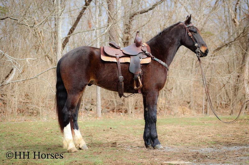 ONLINE AUCTION Place your bids at www.PlatinumEquineAuction.com Starting Bid $3500 Auction ends March 23rd, 2025 Need a new saddle? Check out White Rock Saddles on our website or Facebook! This is “MOONSHINE”, a real stylish, extra fancy moving BAY FRIESIAN QUARTER HORSE CROSSBRED gelding that is broke to ride and drive. This handsome guy stands 16 hands tall and is well proportioned with lots of eye appeal. He is 4 years old. He is versatile and has been ridden English and Western. He has been working in the stockyards to pen back cattle and he has been out on the trails. He is a super pleasant natured horse with lots of ride and a very floaty way of moving. He is talented, well trained, smart, and athletic. This gelding will cross water, he is traffic safe, and he will travel through rocky terrain without any hesitation. He will lope nice circles, catch his leads, stop easy, and back up. He stands to harness, hitch, tack, mount, and groom. He is quiet natured to be around and enjoys attention. This gelding has lots of class, ability, and sense. Located in Flemingsburg, KY. For more info or to make a Buy It Now Offer contact HH Horses Erin 304-238-4155 ONLINE AUCTION Place your bids at www.PlatinumEquineAuction.com Starting Bid $3500 Auction ends March 23rd, 2025 Need a new saddle? Check out White Rock Saddles on our website or Facebook!