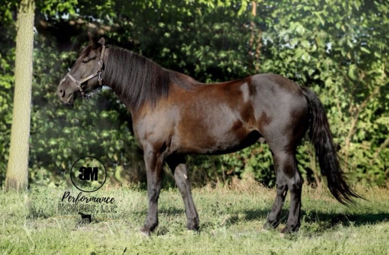 "AVAILABLE ON ONLINE HORSE AUCTION AT www DOT MagicHorseAuction DOT com BIDDING OPEN NOW thru TUESDAY | November 11TH! - BUY IT NOW AVAILABLE! *Final price will be determined on auction site* CONSIGNOR CONTACT INFO: Caelyn Medler 618-445-7751 LOCATION: Albion, IL "Chief- 5yr old 15.1H Black Friesian x Quarter Horse Cross He’s the guy that’s made for the whole family and one that’s going to make someone an all around, reliable partner! Rides western or english. Has had ropes thrown off of him, drug stuff around, walked and trotted over obstacles, ponied other horses, trail rode, worked in the arena, and all kinds of other things. Truly an all-around guy that’s safe and sane with a huge personality to boot. Wears his heart on his sleeve and loves to learn new things. Because of his big personality, you always know what he’s thinking. This guy’s skillset and ability to do more is endless. He’s a one horse owner prior to us, who raised him from a yearling. They worked cattle with him and rode trails in North Dakota. They moved and couldn’t take him with them so a forever home is number one priority! Has never offered to buck, rear, kick, etc. He loves to lick and nibble but doesn’t bite. Will occasionally paw when tied, but will stand all day. Good for the farrier and loaded right up in the trailer. Absolutely no maintenance required. Very easy keeper and does well in a pasture group or stall. Has great feet and doesn’t require shoes, but we shoe all that we trail ride and he’s been on the trail quite a bit lately so he has front shoes on at the moment. He’s the guy that’s fun to be around and always matches your energy and intensity. Reliable, insured transport available nationwide! Located in Southern Illinois. At CM Performance Horses, LLC, we always strive to advertise our horses as honest and upfront as absolutely possible and center our work around making reliable, lifelong equine partners where both horse and rider will excel. We always have references available from pleased and returning clients and have the privilege to continue hearing about their success long after they choose a CM Performance Horse!