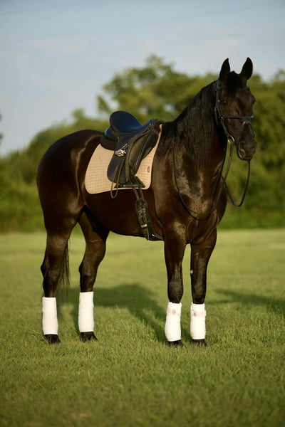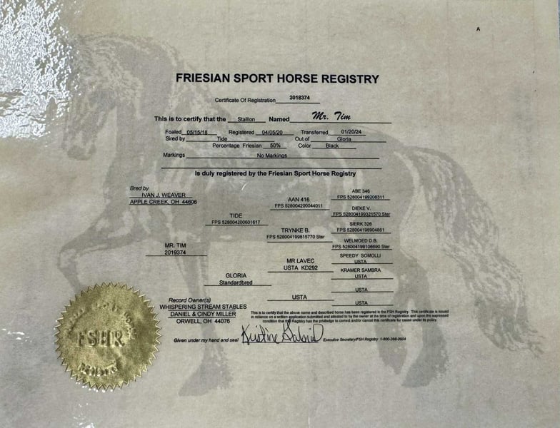 ONLINE AUCTION Place your bids at www.PlatinumEquineAuction.com Starting Bid $3500 Auction ends August 24th, 2025 Need a new saddle? Check out White Rock Saddles on our website or Facebook Toby is an elegant 15.3 coal black 2020 model, regsitered Fresian Sport Horse gelding schooling beautifully in the the dressage ring with tons of potential to carry you through the levels! Rides quietly in the arena or hacking out alone & in a group. Safe and easy for any level rider with simple transitions, changes, and gaits. Lofty and comfortable at the walk, trot, and canter with a soft mouth and moves around easy off leg. Toby rides outside, down the trails, across creeks, ditches, deadfall ect… he will ride around the ranch as well. He is a true gentleman in the stable to catch, groom, handle, saddle, mount, and ride. No silliness or vices of any kind. For more info contact Jordan Brown 502-565-6621 Located in Waco, TX. ONLINE AUCTION Place your bids at www.PlatinumEquineAuction.com Starting Bid $3500 Auction ends August 24th, 2025 Need a new saddle? Check out White Rock Saddles on our website or Facebook