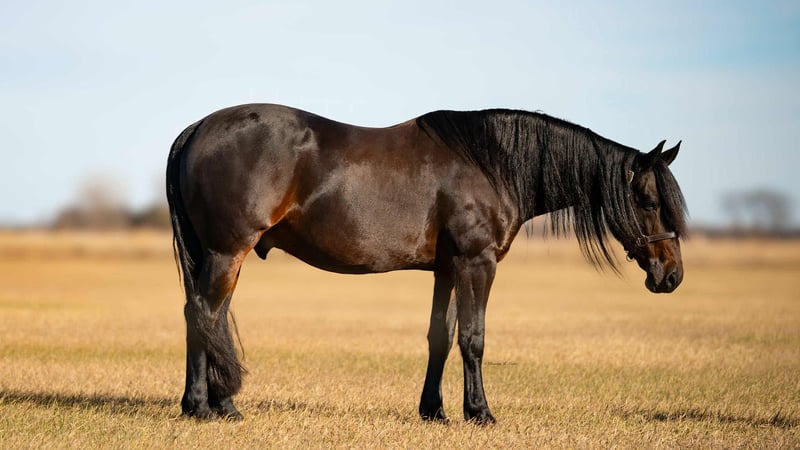 ⚜️ 𝓗𝓮𝓻𝓲𝓽𝓪𝓰𝓮 𝐖𝐢𝐧𝐭𝐞𝐫 𝓒𝓵𝓪𝓼𝓼𝓲𝓬⚜️ Happening now thru MONDAY | DECEMBER 29th - Available EXCLUSIVELY on HorseBid's website! For more details and to register visit: www.Horsebid.com CONSIGNOR CONTACT: Krazy K Versatility Horses 308-390-4873 LOCATION: Grand Island, NE BREED: Friesian cross REGISTERED: Yes REGISTERED NAME: Titus D Rocks COLOR: Black Bay HEIGHT: 15 AGE: 7 GENDER: Gelding Here ya go, folks! A horse that can do it all. He has not only been a barn favorite, but he has also been my very own personal favorite (and I am VERY PICKY). Allow me to tell you about this unicorn we call Henry James. Henry James is just the right height, standing a hair north of 15 hands. He is rich in color, black all over with chocolate accents. He has a mane and tail that most only dream about. Oh, and let me tell you about his personality. He is quiet and calm, a true steady Eddie. He will come when you call his name, usually at a trot! He has a funny, curious personality. But being respectful is at the top of his list. Henry James is easy to get along with, for both horses and people! He is also durable – or may I say wise enough to take care of himself. There is not one blemish on this beautiful boy, and he makes good decisions to keep it that way! Henry could live in a junk yard with a three ring circus next door and would still be injury free and quietly observing all the entertainment with an amused look on his face. Henry is kind and patient for the farrier. He is easy to shoe, but honestly, unless we are heading out into really rocky terrain, Henry James is perfectly fine barefoot. He has never taken a tender step and has proven himself to be as tough as a summer day is long. Henry is just a good-looking fellow. He seems to be able to stay in a world show condition on a round bale in a dry lot. He has lived in a box stall and has also spent months turned out with a herd of other horses. Either way, he is happy and content and easy to keep weight on. Wherever he is, he seems to be as neat as your granny at a Sunday brunch! Which is worth a lot at the end of a long day of cleaning stalls! All of these aspects are just the gravy on top, but let me tell you how he is to use and enjoy… Henry James rides both western and English or just climb aboard, bareback, in a halter if you need a therapeutic walk to bring you back to what matters most. We have taken him over down trees and cross rails a handful of times, which he jumps with grace and beauty! And ohhh, have you seen him pull a buggy? He is the easiest horse I have ever driven, and boy, does he look elegant - he can level up your Thanksgiving traditions or blow your Pinterest level wedding out of the water! No worries about traffic - we were asked to use him for a commercial on the down town streets, and he acted like the true gentleman he is. Henry James will ride one handed or two in just about any bit you like, but if you ask him what his very favorite is, he will tell you a smooth snaffle bit ridden two-handed. To add to this very long list of amazing things about Henry James, he is good with being ridden every day or just as great with time off - no worries, we have tried it and we know him well! Rather, it be a week off or 6 months off, he will pick up where you left at, if not be even better than what you remember. He is a quick study. I taught him to lay down in one day - he doesn't lay down as seamlessly as a camel on command, but I promise it is adorable how he grunts when he wallers down to his belly. Can you tell yet how much I truly love this horse? I really do. We are only listing him here because I want what is best for him - I want him to be someone's main man. My career revolves around showing Versatility Ranch Horse shows with the American Quarter Horse Association. While I know Henry is amazing, he doesn't fit in that box. I am just too immersed in the AQHA show industry for Henry James to have the spotlight that he deserves. So I am hoping his forever family finds him here. You will see it all in his video, so please take the time to watch it if his pictures and write-up speak to you. Henry James rides, drives, and does tricks. He is unfazed and very entertained by all obstacles - logs, water crossings, drags, ropes, cattle, tarps, hula hoops, and a big bouncy ball. He is all I have described and more. Please call if he sounds like the horse you have been searching for - he is truly a dream come true.