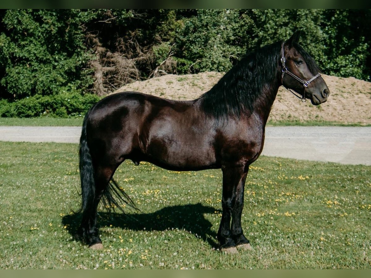"AVAILABLE ON ONLINE HORSE AUCTION AT www DOT MagicHorseAuction DOT com BIDDING OPEN NOW thru TUESDAY |February 17th! - BUY IT NOW AVAILABLE! *Final price will be determined on auction site* CONSIGNOR CONTACT INFO: Cindy Schie #716-200-2937 LOCATION: Akron, NY" Onyx also known as Blackhawk is a 6-year-old registered Friesian/Pony gelding standing at 14.1hh. Well, broke to ride and drive. Rides both English and Western. Amazing arena horse! Lopes a circle nicely. Picks up walk, trot, and canter easily. Leg yields. Does great on obstacle courses.. Stands quietly and patiently at a mounting block. Stops and stands when asked. Picks up both leads correctly. Blackhawk would be a nice dressage prospect. Blackhawk has also been used on the farm. He has been on trails and will cross creeks, step over logs with ease, and climb any hill you ask him to. He does fine out in groups or out alone. He is traffic safe and will stand patiently while at stop signs. This pretty gelding also has excellent ground manners and has the sweetest personality. He is easy to catch in the stall and outside. Ties nicely on a lead line and in cross ties. He is easy to handle, even the kids can groom, tack, and get him ready to ride with no help from an adult. He stands well for the farrier and vet. Blackhawk loads well and remains quiet during hauling. He has a super sweet attitude and loves attention! Blackhawk sells a 100% sound with x-rays and PPE! Contact Cindy at 716-200-2937 for more information! Located in Akron,NY