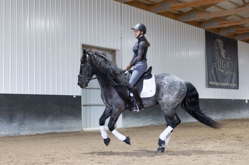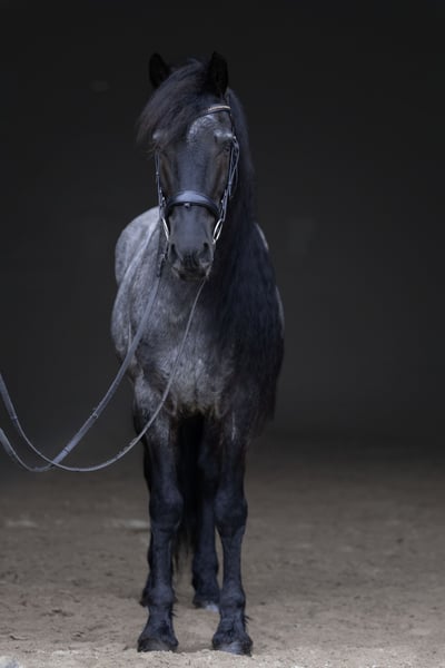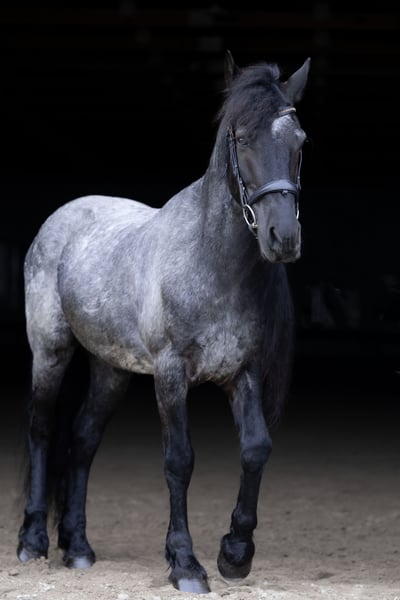 ⚜️𝐭𝐡𝐞 𝓔𝓵𝓲𝓽𝓮 𝐒𝐩𝐫𝐢𝐧𝐠 𝐂𝐥𝐚𝐬𝐬𝐢𝐜⚜️ Happening now thru MONDAY | APRIL 20th - Available EXCLUSIVELY on HorseBid's website! For more details and to register visit: www.Horsebid.com CONSIGNOR CONTACT: Legacy Sport Horses 219-644-5067 LOCATION: Michigan City, IN BREED: Friesian QH Cross REGISTERED: REGISTERED NAME: Ash COLOR: Blue Roan HEIGHT: 15 AGE: 8 GENDER: Gelding Ash is a Friesian/Quarter Horse cross with the kind of quiet, steady confidence that makes him a truly enjoyable horse to have in any program. He is naturally more “whoa” than “go,” with an extremely smooth trot and canter, a comfortable ride, and a calm, unbothered mindset. He is not spooky and handles new situations with a relaxed, sensible attitude. Under saddle, Ash is straightforward, reliable, and easy to ride. He has been ridden by a variety of riders and is the type that allows his rider to settle in and enjoy the ride. Whether in the arena or out on the trail, he stays consistent, relaxed, and willing, making him a great option for adult amateurs, younger riders, or anyone looking for a comfortable, confidence-inspiring partner. On the ground, Ash takes a little time to get to know new people, but once he does, he is very affectionate and enjoys attention. He is well-mannered in daily handling and easy to have around. Ash is the kind of horse that combines comfort, reliability, and personality. With his steady nature, smooth gaits, and striking look — including his signature long mane — he is a horse that is easy to enjoy both in and out of the saddle.