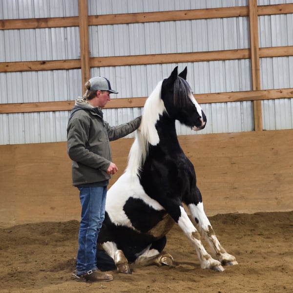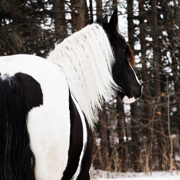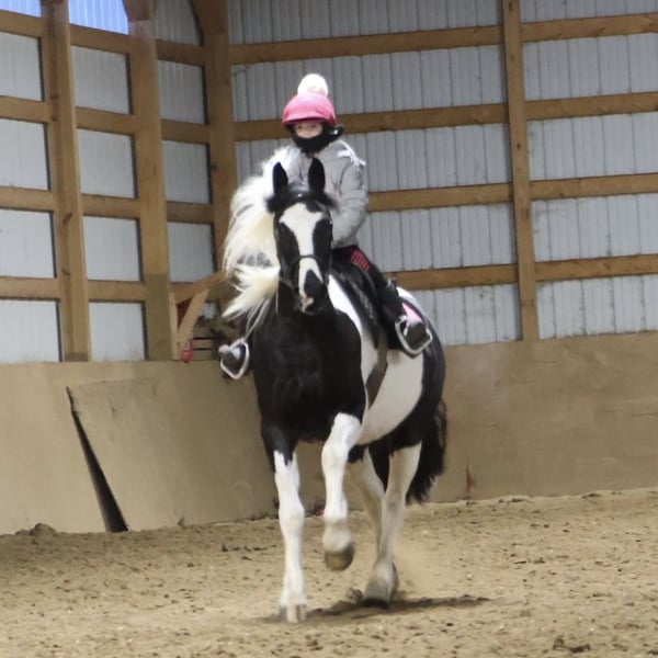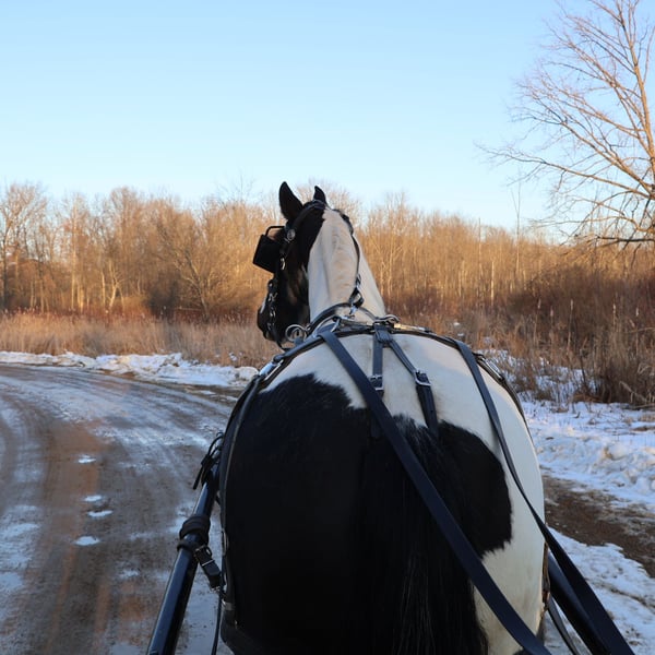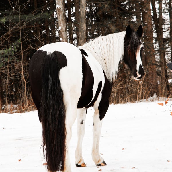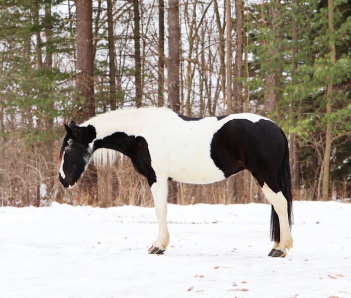 ⚜️𝐓𝐇𝐄 𝓗𝓮𝓻𝓲𝓽𝓪𝓰𝓮 𝐖𝐢𝐧𝐭𝐞𝐫 𝓒𝓵𝓪𝓼𝓼𝓲𝓬⚜️ Happening now thru MONDAY | DECEMBER 29th - Available EXCLUSIVELY on HorseBid's website! For more details and to register visit: www.Horsebid.com CONSIGNOR CONTACT: Blackstone Stables 248-390-6831 LOCATION: Howell, MI BREED: Friesian Heritage Horse REGISTERED: Yes REGISTERED NAME: Hattie’s Moonlight Dream COLOR: Black and white paint HEIGHT: 15.1 AGE: 7 GENDER: Gelding Haite's Moonlight Dream, or Dream as we call her at home nothing short of spectacular from her mind to her color, to her breeding there’s nothing she’s lacking. Dream is a 15.1hh stout made, friesian heritage horse. she is sired by the legendary Haite fan North Ster and out of a paint Haflinger cross mare. She is 7 years old. Dream has an incredible mane and tail and light feathering. She has gorgeous conformation. Not only is as stunning as a horse who walked right out of a fairy tale she is sensible. Dream will walk, trot and canter with ease. All of her gaits are as comfortable as floating on a cloud. She has had years of natural horsemanship training and will ride completely tackless at the walk, trot, canter and even over jumps. She moves off of your seat and leg effortlessly. She has been in the city, in traffic, in the woods and in water. She has been in the arena and the fields. This girl will go anywhere with any rider onboard. She goes English, Western and even bare back. She knows how to drive and loves it. Dream has all the bells and whistles when it comes to her trick training. She will sit, lay down, say yes and no and will rear up on command. She listens to her persons ques with the most attention and respect. Dream has been trained by the absolute best in the business. She has seen tarps, umbrellas, balls, bridges, inflatable dinosaurs and much more. You will be hard pressed to spook her. This mare has been on several hunter paces. She has also been used to round cattle. In the arena she jumps in beautiful form. She has been to schooling shows and used in lessons for kids as young as 5 years old. This is a unique find that would be an asset to anyone looking for a feathered horse that anyone can get along with anyone in any situation. Dream has been a very loved family member only having one owner since she was a baby. She is only being offered for sale to the best of homes as her owner has a few upcoming babies to bring along. Please watch her video, she speaks volumes for her self. Please call or text Ellesse Schwartz at 248-390-6831. Dream lives in Howell, MI 48855