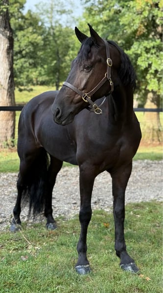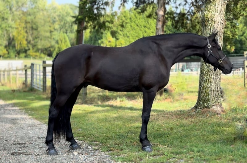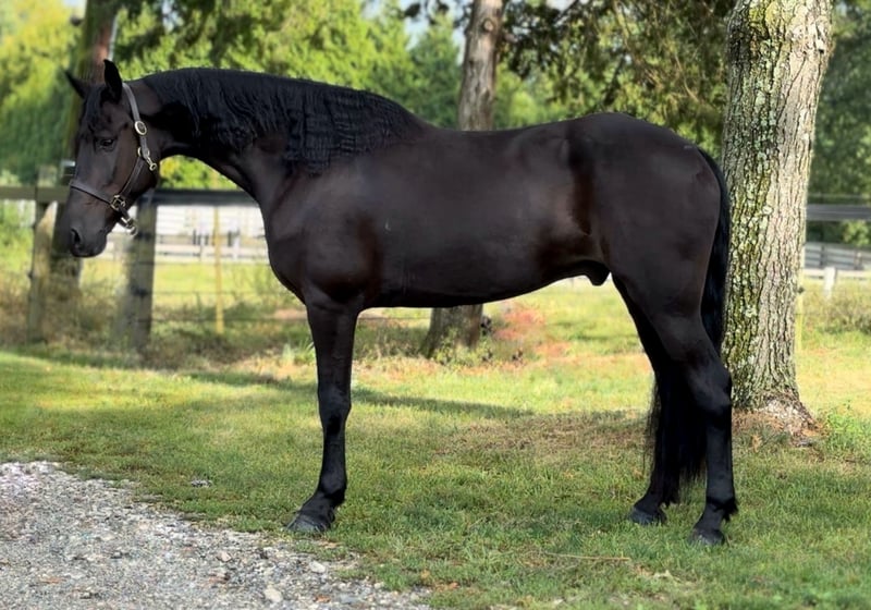 "AVAILABLE ON ONLINE HORSE AUCTION AT www DOT MagicHorseAuction DOT com BIDDING OPEN NOW thru TUESDAY | September 30TH! - BUY IT NOW AVAILABLE! *Final price will be determined on auction site* CONSIGNOR CONTACT INFO: Christine Helmlinger 609-432-9779 LOCATION: Allentown, NJ "Wow look at him!! Do I even say more! Dream horse alert!! Extremely in your pocket type Kick to go ride. Not forward but moves easy off leg. One person owner and breeder with full history and sound!! I’ve sold other horses on magic horse and I have many many happy clients and no complaints! My horses are exactly how I describe them!! Meet Te-beauty This is your 4th level dressage prospect that's (out of the famous TEjerk stud) Standing a solid 16.2y 7 yr old Friesian sport horse gelding with application paperwork in hand. He is the perfect size and age for everyone! This breathtaking gelding is the picture of elegance and presence. He has that rare “wow factor” that turns every head the moment he steps into the arena. With naturally expressive movement, he shows off an incredible toe-flipping extended trot that feels as smooth as it looks with a lovely canter. He will collected up with asked and holds his heads very consistently, where you ask. Beauty does look at new things at times but he is very controllable! My 9yr old daughter rides him with ease! Beauty is training for dressage, he is proving to be both talented and willing. Sweet and kind in the barn, he loves people and is a pleasure to work with every day. His uphill build, fluid gaits, and striking black coat make him a true standout both in and out of the ring. If you’re looking for a horse with the talent, temperament, and beauty to shine in the dressage arena, this elegant partner is the one. Beauty will also take a jump if I asked and it's very willing. So if someone is looking for a three day events prospect that would also work for him. Sire isn’t the last 2 pics. Located in Allentown New Jersey my cell is 609-432-9779. Shipping quotes available. No vices, issues or maintenance!!
