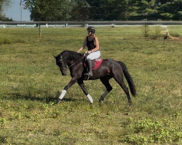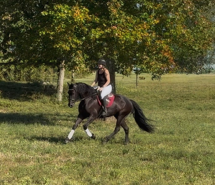 Disponibile all'asta online su www.DOT.MagicHorseAuction.DOT.com Offerta aperta da ora fino a martedì 30 settembre! – Opzione "Compra Subito" disponibile! *Il prezzo finale sarà determinato sulla piattaforma dell'asta* CONTATTO DEL CONSIGNATORE: Christine Helmlinger, 609-432-9779 LOCALITÀ: Allentown, NJ "Wow, guardalo!! Dico davvero altro?! Allerta cavallo da sogno!! Estremamente affettuoso, tipo "cavallo da portare sempre con sé". Può essere spronato a partire, ma non è un cavallo da avanti, si muove facilmente anche con un leggero stimolo. Proprietario e allevatore unico, con tutta la documentazione e in perfetta salute!! Ho venduto altri cavalli tramite Magic Horse e ho molti clienti soddisfatti, nessuna lamentela! I miei cavalli sono esattamente come li descrivo!! Incontra Te-beauty Questo è il tuo prospetto per il livello di dressage 4° (out of the famous TEjerk stallion). Un gelding Friesian sport horse di 7 anni, alto circa 1,65 m, con documenti di registrazione in regola. Ha la taglia e l’età perfette per tutti! Questo splendido gelding è l’immagine dell’eleganza e della presenza. Ha quel raro “fattore wow” che attira ogni sguardo nel momento in cui entra in arena. Con movimenti naturalmente espressivi, sfoggia un trotto allungato incredibilmente fluido e con un passo di galoppo molto elegante. Può essere raccolto su richiesta e mantiene molto bene la posizione della testa, dove gli si chiede. A volte può essere curioso di nuove cose, ma è molto controllabile! La mia figlia di 9 anni lo monta con facilità! Beauty è in training per il dressage, dimostra di essere sia talentuoso che disponibile. Dolce e gentile in stalla, adora le persone ed è un piacere lavorarci ogni giorno. La sua costruzione uphill, i giri fluidi e il suo manto nero brillante lo rendono un vero protagonista sia dentro che fuori dall’arena. Se cerchi un cavallo con talento, temperamento e bellezza per brillare nel mondo del dressage, questo partner elegante è quello che fa per te. Beauty può anche saltare se richiesto ed è molto disposto. Quindi, potrebbe essere adatto anche come prospetto per il tre-day eventing. Il stallone non è quello delle ultime due foto. Situato ad Allentown, New Jersey. Il mio cellulare è 609-432-9779. Disponibili preventivi per il trasporto. Nessun vizio, problema o bisogno di manutenzione!!