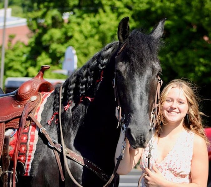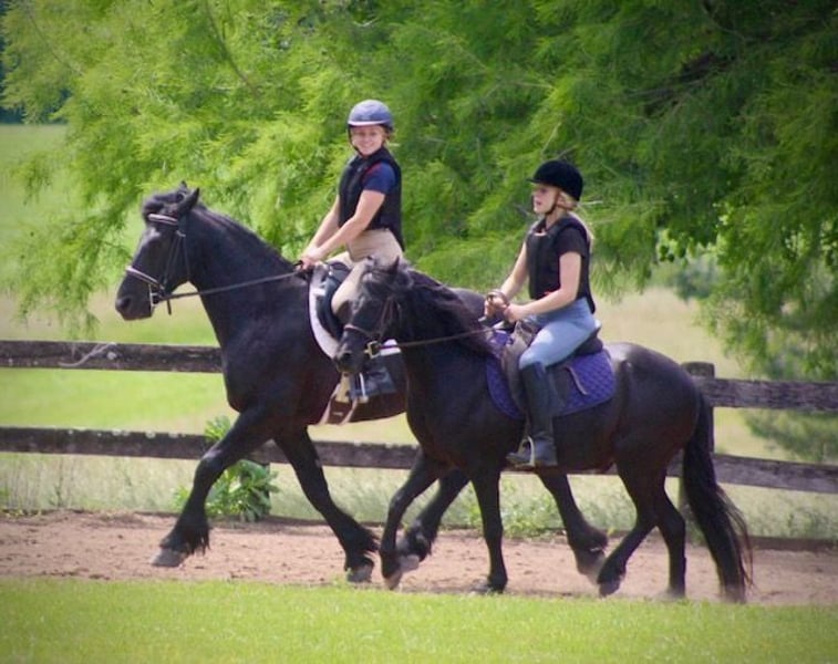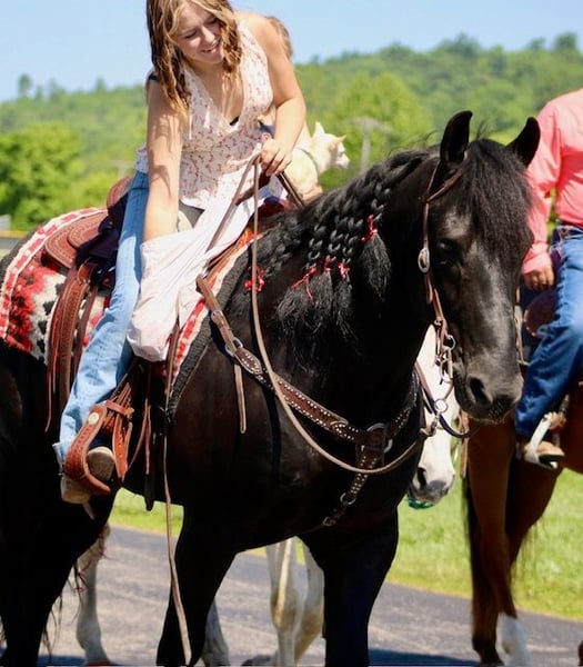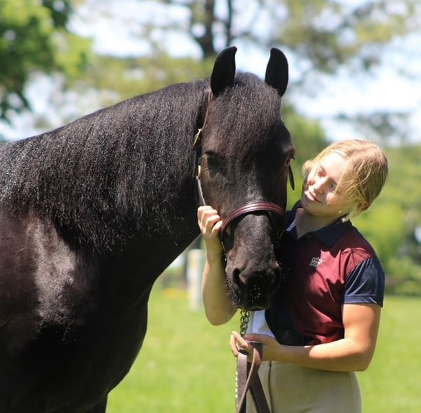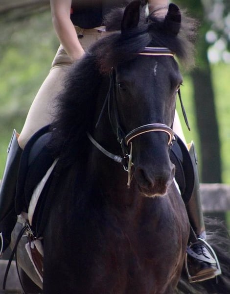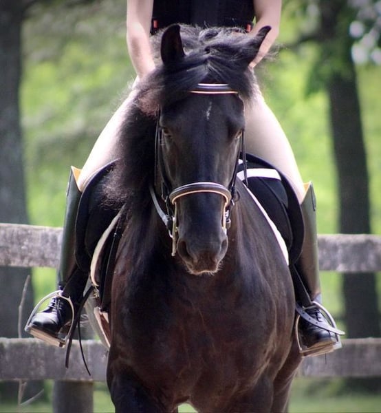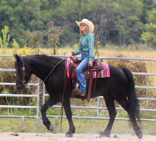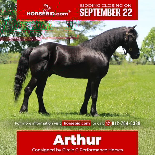🍁𝒕𝒉𝒆 𝐅𝐀𝐋𝐋 𝑺𝒑𝒆𝒄𝒕𝒂𝒄𝒖𝒍𝒂𝒓🍁 Happening now thru MONDAY | SEPTEMBER 22nd - Available EXCLUSIVELY on HorseBid's website! For more details and to register visit: www.Horsebid.com CONSIGNOR CONTACT: Circle C Performance Horses 812-704-6388 LOCATION: Borden, Indiana BREED: Friesian QH Cross REGISTERED: No COLOR: Black HEIGHT: 14.3 AGE: 8 GENDER: Gelding Arthur is a striking jet-black Friesian/Quarter Horse cross gelding who stands at a handy 14.3 hands. He captures the elegant presence of the Friesian while offering the steady, versatile temperament of the Quarter Horse—bringing you the best of both worlds. Stocky and well-boned, Arthur easily carries riders of all sizes, all without needing a step ladder to mount. This gelding is both broke to ride and drive. He’s been ridden extensively in English and Western tack and performs equally well in the arena or out on the trail. Arthur has show experience at open and schooling shows, enjoys jumping, and is a blast to ride cross-country. He would also make an excellent foxhunting prospect. For western riders, he neck reins, side passes, and shines in trail obstacle courses. On the trail, Arthur is confident, seasoned, and sure-footed—happy to go alone or in groups, crossing anything you point him at, and with the stamina to stay with you all day. He’s also camped overnight tied to hitch rails many times with ease. Arthur is quiet, dependable, and safe for riders of all ages and experience levels. He’s been ridden and driven through towns, traffic, and countless parades—remaining calm even next to sirens and fire trucks. He’s a well-traveled partner who steps off the trailer at events, shows, rodeos, clinics, or trail rides as though he’s right at home. Beyond his talent and versatility, Arthur’s heart and personality truly set him apart. Friendly, affectionate, and eager for attention, he greets you at the gate and loves to be groomed. He bonds easily, and his gentle, kind nature makes him a strong candidate for therapy programs. He’s become a favorite with our barn’s teenagers—always willing to listen and offer his quiet company. Arthur sells 100% sound, with no vices or health issues. Horses like him don’t come along every day—safe, versatile, and beautiful, with a personality you’ll fall in love with. 📍 Circle C Performance Horses – Borden, IN 📞 812-704-6388