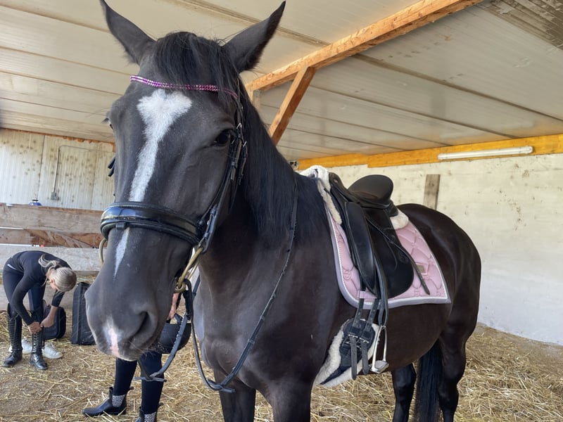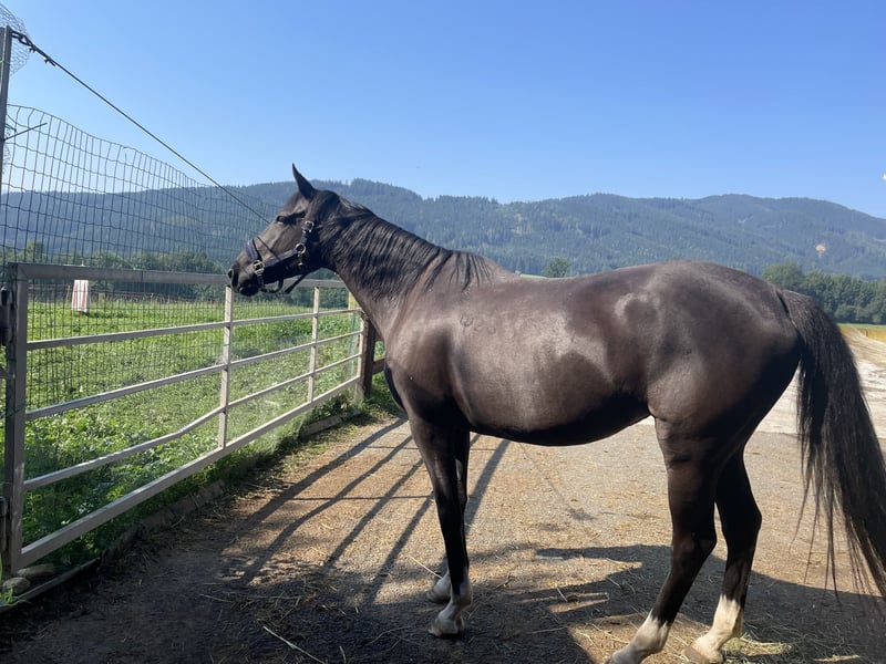 Summer ist eine 11jährige Rappstute 1,60m groß und mit viel Potential, das gefördert werden will. Sie lebt derzeit mit drei Stuten in einem Offenstall und ist im mittleren Rang. Sie ist barhuf unterwegs. Auf neue Pferde reagiert sie zurückhaltend und vorsichtig, legt dieses Verhalten aber bald ab. Der neue Besitzer sollte ein sicherer und erfahrener Reiter sein, der gerne mit dem Pferd arbeitet und dessen Potential (schöne Gänge) schätzt, fördert und weiterbildet. Im Umgang (putzen, führen) ist sie pflegeleicht, an der Longe ist sie temperamentvoll und hat viel Energie, aber mit Konsequenz baut sich das ab. Bei Ausritten im freien Gelände zeigt sie Dominanz und braucht daher eine erfahrene und konsequente Hand. Darüber hinaus eignet sich Summer auch als Zuchtstute ( Abstammung „North Star“). Dem Level von Summer kann ich als Wiedereinsteiger leider nicht gerecht werden und das beeinträchtigt die Chemie zwischen uns. Da ich für Summer nur das Beste möchte, habe ich mich nach 2 Monaten dazu entschlossen, ein neues und geeigneteres Zuhause für sie zu finden. Ein Probereiten kann selbstverständlich vereinbart werden. Da wir über kein Viereck verfügen, ist das Reiten nur im freien Gelände möglich (bitte nur erfahrene fortgeschrittene Reiter).