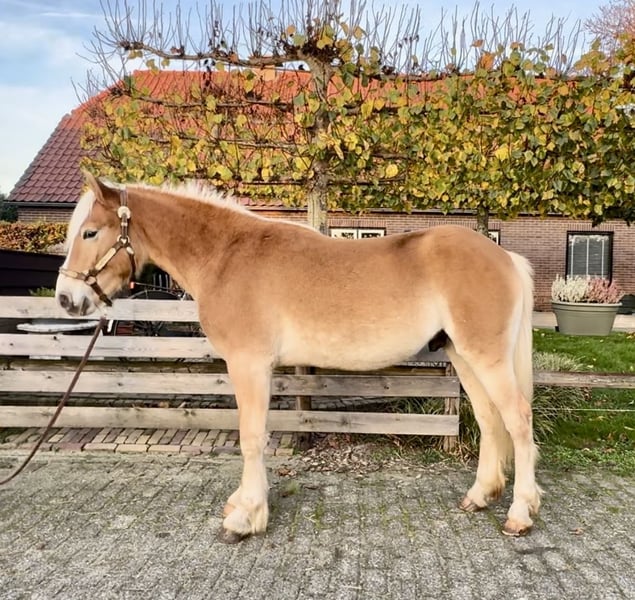Cute Haflinger stallion almost 2 years old! Cees was born in 2024. He currently measures 139-140 cm, so he will develop into a nice size! A sweet pony in handling, both in the stable and with other horses!