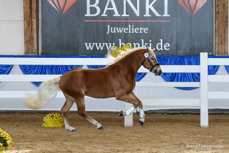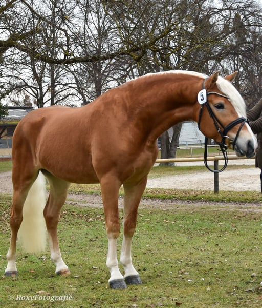 Verkaufe charmanten Haflinger Junghengst / Wallach Geboren in 04/2023 wird er im Frühjahr nun 3 jährig und ist bereit die Welt zu entdecken. Er stammt ab vom Bundesprämienhengst, Körungssieger und HLP-Sieger Bugatti, der aktuell Landbeschäler im Landgestüt Moritzburg ist und 2023 Bronze zum Bundesfahrponychampionat holen konnte. Seine Mutter ist eine Verbandsprämienstute vom 3-fachen Weltsiegerhengst Liz. Abendstern x Winterstein. Balios vereint damit beste tiroler Genetik der Mutter über Bugatti mit dem Vererber Bellisimo sowie dem herausragenden Mutterstamm des Bugatti. Als Fohlen siegte er zu seiner Fohlenschau, wurde 5.ter zum Championat in Moritzburg und Reservesieger der Hengstfohlen zum Haflingertag in Brandenburg-Anhalt. Er ist bereits sehr gut entwickelt und misst aktuell bereits mind. 1,51 m (eher mehr) und wächst natürlich noch. Er ist selbstverständlich artgerecht in einer altersgemischten Junghengstherde aufgewachsen. Balios kennt die Führmaschine, das Longieren, Freilaufen in der Halle sowie Freispringen. Er wurde zur Körung vorgestellt und ist daher aktuell vorn beschlagen. Hufschmied und Verladen sowie die normalen Umgangsformen kennt er daher selbstverständlich. Balios ist ein wirklich modern aufgemacht Haflingerhengst im sportlichen Typ. Er sucht ein Zuhause in dem er weiter ausgebildet, gefordert und gefördert wird. Eher kein Pferd um nur 2x die Woche zu arbeiten, er braucht eine Aufgabe. Er lernt sehr schnell und gibt sich immer große Mühe. Ich sehe ihn eher bei einem Freizeitreiter/ -fahrer mit Turnierambitionen. Balios ist ein Pferd mit einer unglaublichen Ausstrahlung und ein wahrer Hingucker, er besitzt 3 gute Grundgangarten und ist jetzt angearbeitet und bereit seine Karriere als Reit- und/oder Fahrpferd zu starten. Wer einen zuverlässigen Partner für vorrangig den sportlichen Bereich sucht, wird bei ihm nicht enttäuscht werden. Er wird zeitnah kastriert und dann startet seine Ausbildung hier so langsam. Mit steigendem Ausbildungsstand steigt auch der Preis. Momentan noch ein absoluter Rohdiamant zum selbst schleifen/ ausbilden. Transport ggf. möglich.