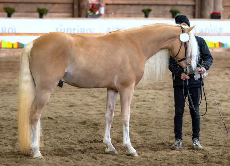 Giovane stallone, grazioso e dalle caratteristiche moderne Nato nel 2022, altezza al garrese 152 cm Padre: ALPENBUE-I (IB – molto buono) Madre: ROMANA (IB – molto buono) Selezionato per il Campionato Provinciale Puledri 2022 28° Raduno Nazionale Stalloni Haflinger 2025 a Egna: approvato Valutazioni singole: B/B/B/B/D Giudizio finale: IIA – BUONO Molto tipico, dalle forme armoniose Criniera lunga e bellissima Moderno ed elegante Docile e socievole Molto equilibrato Di sana costituzione Nessun problema con trailer e maniscalco Ha sempre trascorso l'estate in malga all'alpeggio in branco Sicuro anche in passeggiata Addestrato a sella (campo e campagna) Il cavallo ideale per la riproduzione, il tempo libero e/o lo sport