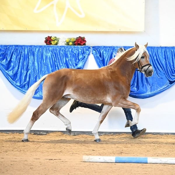 Étalon Haflinger approuvé et testé à louer (possibilité de vente) Andiamore PBS a été approuvé en 2023 à Munich et passera son test de performance de 30 jours en 2025 à Munich, avec une excellente note de 7,71 points. Père : Amore Mio, étalon élite et BPrH DSP Mère : Urmel, fille du champion du monde Nostalgie Nous proposons de louer Andiamore pour la prochaine saison de reproduction et souhaitons également continuer à le faire progresser en saut d'obstacles et en dressage. Si tout se passe bien, nous envisagerons également de le vendre. N'hésitez pas à nous contacter par message privé.