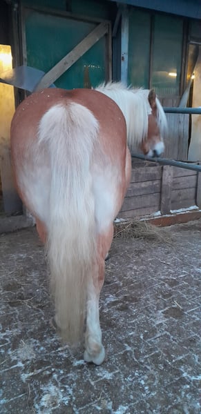 Verkaufe meine Reinzucht-Haflingerstute. Sie sollte meine "Stute fürs Leben" werden, aber leider habe ich festgestellt, dass die Chemie zwischen uns nicht stimmt. Sie hat sehr viel Go und da ich eine eher ängstliche Reiterin bin, finden wir leider nicht zueinander. Sie wird dieses Jahr 11 Jahre alt, ca. 147 cm groß und kompakt, weshalb sie auch größere Reiter gut abdeckt. Sie ist sehr aufmerksam und lernt gerne Neues, sie ist menschenbezogen, möchte ihrem Reiter gefallen und ist stets fleißig und motiviert. Gleichzeitig schätzt sie Ruhe und Weidegang zum Ausgleich. Im Winter zeigt sie sich besonders arbeitsfreudig und hat viel Energie. Ich habe sie in Thüringen gekauft. Sie war bis zu dem Zeitpunkt hauptsächlich Kutschpferd und nur ab und zu unter dem Sattel in der Gruppe im Gelände. Innerhalb von insgesamt 3 Monaten im Beritt (Englisch) hat sie gelernt, sensibel auf Zügel- und Schenkelhilfen zu reagieren. Sie läuft in allen 3 Gangarten im Viereck und im Gelände und ist dabei mit viel Go ausgestattet, aber immer händelbar und brav. Buckeln, Steigen oder Durchgehen hat sie zu keinem Zeitpunkt gezeigt. Sie kennt landwirtschaftliche Maschinen, Autos, Hunde, etc. Wir haben bisher nichts gefunden, wovor sie Angst hat. Auch an der Longe läuft sie brav. Anderen Pferden gegenüber ist sie stets freundlich und somit absolut herdentauglich. Im Beritt stand sie auf der Koppel in einer gemischten Herde von insgesamt 10 Pferden. Bei uns steht sie in einer Paddockbox mit direkten Koppelzugang. Sie ist schmiede- und verladefromm, gechipt, Tetanus geimpft und entwurmt. Sie läuft barhuf, keine Rehe, kein Ekzemer und auch sonst keinerlei gesundheitliche Probleme. Sie hatte bei ihrem Züchter ein Hengstfohlen und ist im Zuchtbuch 1 des Pferdestammɓuchs Weser-Ems e.V. eingetragen. Sie hat einen roten Equidenpass mit vollen Abstammungsnachweis. Vater: Anni Sam SG, Muttervater: Nelfried. Somit auch für Züchter interessant. Kurzbeschreibung: - brave Freizeitpartnerin - 2-spännig gefahren - gelände- und straßensicher - sehr sozial und unkompliziert mit anderen Pferden - schmiede- und verladefromm Sie ist eine ehrliche Seele und verdient einen Menschen, der sie genauso schätzt und liebt, wie sie ist. Sie wird nicht als Anfängerpferd oder Kinderpferd verkauft. Da sie eine Bezugsperson braucht, ist sie nicht für Reitschulen geeignet. Bei ernsthaftem Interesse können weitere Bilder, Videos und Abstammungsnachweis zugesandt werden. Ich freue mich auf Nachrichten!
