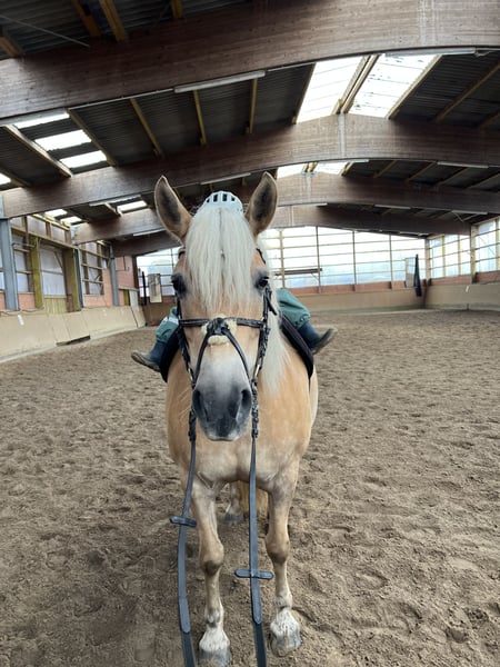 For personal reasons, I have decided to find a good home for my Haflinger mare. She was born in 2013, stands at 1.47m tall, and is sired by the dressage stallion Ammersee. I bought her in 2014 and trained her myself, which is why she is only ridden for leisure. When riding, she is always eager and responds well to the rider's aids. She is motivated when jumping. Trail riding in groups and alone is no problem for her, although she can be a bit curious. Even though she is very sweet and careful with my son, I am not offering her as a children's pony. Currently, she is kept in a paddock where she lovingly leads her herd. Transitioning to a new stable has never been a problem for her, and she can also adapt to a new environment. I hope she continues to live in a paddock. We have tried box housing, but I think she is not comfortable in that setting. She has mud fever on her left hind leg, but we have not had any issues with it for years. On her right hind leg, she has a scar from her young pony days, which is only considered a "cosmetic flaw." She is barefoot and does not require shoes. If you have any questions, feel free to reach out and introduce yourself with a short message. For a meet-and-greet, we charge €20, which will of course be deducted from the purchase price. !Home before price!