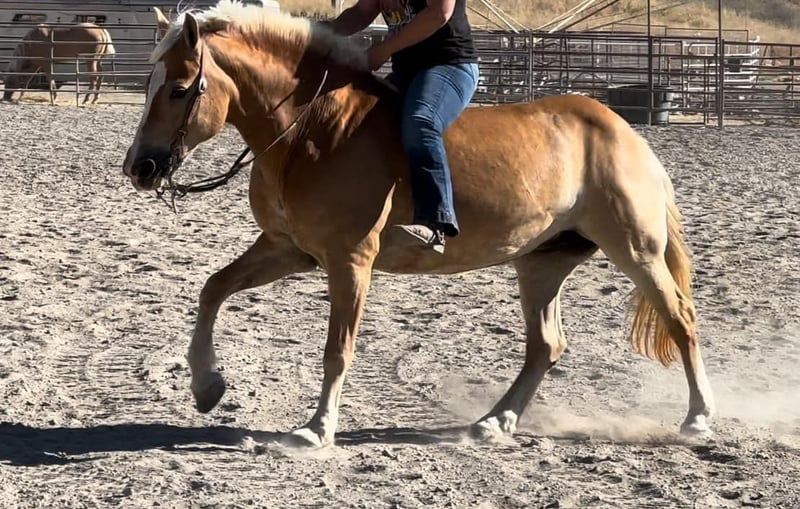 ONLINE AUCTION Place your bids at www.PlatinumEquineAuction.com Starting Bid $3500 Auction ends August 25th, 2024 Need a new saddle? Check out White Rock Saddles on our website or Facebook! Daisy is the true definition of a bombproof babysitter. Standing at a thick 14.2HH and just 12 years old, Daisy will take care of anyone on her back. This little lady has raised up more kids than Nanny McPhee! From city kids to great grandmas, everyone is sure to adore her. Anything a horse can do I’m sure Daisy has done it! From driving wagons, low level English jumping, trails, kids camp she is a true campaigner for the entire family. With her puppy dog attitude, she will be the first horse to meet you at the gate every time you call her name. Daisy is willing, patient, and has a kind soul. She will pack clueless beginners around as slow as they want to go, or throw your more advance rider up on to have a blast out on the trails. She has zero spook, buck, or fight. Crosses bridges, water, and logs like they weren’t even there. Daisy carries flags, goes over obstacles effortlessly, and if you can pick it up, you can carry it on her! In the arena she has more whoa than go, picks up her leads. Has a good light neck rein and rides in any kind of bit you want. I cannot express enough how easy this mare is for anyone to ride and have fun doing it. She has been used in summer riding camps, teaching all ages of children the ins and outs of horses. From how to groom, to how to ride. I guarantee her to be the safest horse you’ll own. You cannot ride her for months on months and she will never change her disposition. Daisy is very easy to clip and bathe. She loads and hauls easily. She has been stalled alone or turned out with multiple other horses and she could care less! She is not a “marish” mare at all and has zero attitude about anything. If you’re looking for a solid weekend warrior trail horse, or the best first horse for your children, you won’t find a better one than Daisy! For more information or to come meet this awesome little mare please contact Cheyenne at 831-537-8746. She is located in Bitterwater, CA. ONLINE AUCTION Place your bids at www.PlatinumEquineAuction.com Starting Bid $3500 Auction ends August 25th, 2024 Need a new saddle? Check out White Rock Saddles on our website or Facebook!
