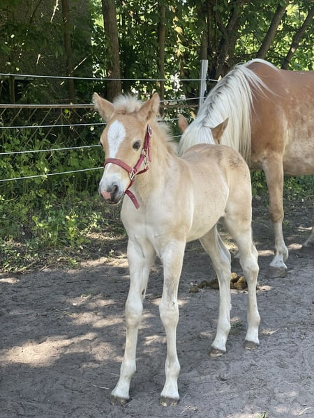 Die wundervolle Gertrude ist unglaublich menschenbezogen und lieb. Sie ist hochintelligent und weiß sich zu präsentieren. Sie kennt das Fohlen ABC und ist sehr respektvoll. Kennt alle möglichen Geräusche und Aktivitäten auf einem Landwirtschaftsbetrieb. Kennt Kinder und große Menschengruppen und ist stets interessiert neues kennenzulernen! Natürlich mehrfach entwurmt und dem Schmied vorgestellt. Sie verfügt über einen sehr guten Typ und Harmonie- Desweiteren hat diese Stute überdurchschnittlich gute Bewegungen! Wurde Championatsfohlen! Interessant für Sport und Zucht Auf den letzten Bildern sieht man den Vater!