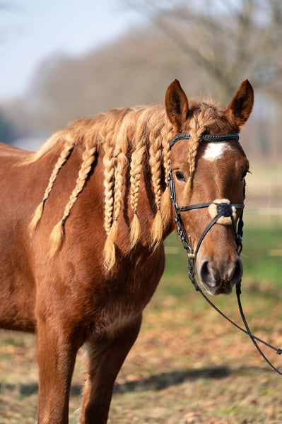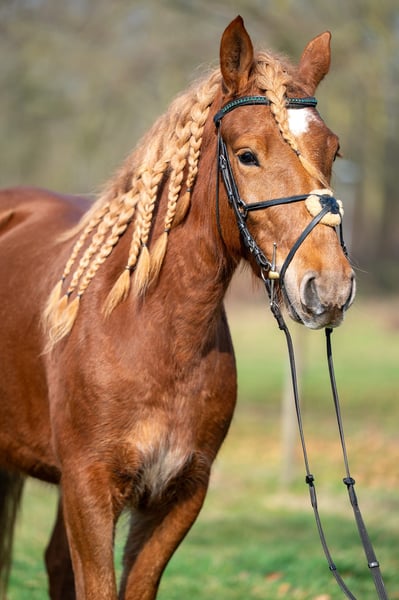 Bildschöne Alessa: Dein Traumpony für Gelände, Western & Therapie Darf ich vorstellen? Das ist Alessa, unsere wunderschöne, 3,5-jährige Stute mit der besonderen geflochtenen Mähne. Sie ist aktuell 1,42 m groß, ein kräftiger Typ und wächst noch auf ein Endmaß von ca. 1,45 m heran. Alessa ist nicht nur optisch ein Hingucker, sondern ein richtiges Herzenspony. Sie ist super, super lieb und schmusig im Umgang – man muss sie einfach liebhaben. Unterm Sattel ist sie für ihr Alter bereits wahnsinnig brav und abgeklärt. Alessa ist in allen drei Grundgangarten angeritten und geht sogar schon mutig alleine ins Gelände. Durch ihr sanftes Wesen und ihren starken Typ können wir sie uns später hervorragend als verlässliches Freizeitpony, für den Westernsport oder sogar im therapeutischen Bereich vorstellen. Sie ist ein Rohdiamant, der mit jedem Tag an Ausbildung gewinnt. Wir suchen für unsere süße Alessa ein 5-Sterne-Zuhause, in dem sie geliebt und weiter gefördert wird. Ein Pony zum Sofort-Verlieben und gemeinsam Wachsen! Auf einen Blick: Größe: aktuell 1,42 m (Endmaß ca. 1,45 m) Typ: Kräftig & bildschön (siehe Fotos) Charakter: Super lieb, schmusig, geht alleine ins Gelände Preis: Dem Ausbildungsstand entsprechend (steigend) Möchtest du Alessa kennenlernen? Wir freuen uns auf deine Nachricht! Alle Angaben ohne Gewähr Keine Verfügung keine Raten // Transport überall hin möglich! Probereiten mo-fr 25€ Sa-so 30€ Vorführen (immer) 10€ Meldet euch gerne! 01703718888