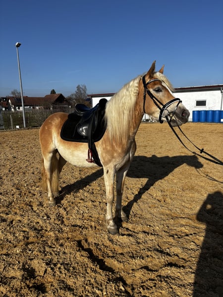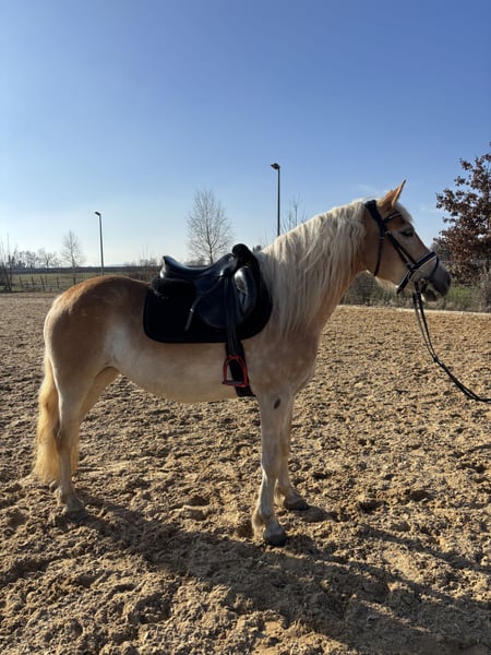 Haflinger Stute, geb. 2022, mit einem Stockmaß von ca. 148 cm Diese charmante Haflinger Stute wurde im Jahr 2022 geboren und besticht durch ihre freundliche Erscheinung und ihr angenehmes Wesen. Mit einer Schulterhöhe von etwa 148 cm ist sie perfekt für den ambitionierten Freizeitreiter oder Nachwuchsreiter, der Wert auf eine gut gerittene und zuverlässige Begleiterin legt. Die Haflinger ist bekannt für ihre robuste Konstitution, ihre freundliche Natur und ihre Vielseitigkeit. Sie ist gut ausgebildet, fein an den Zügel und zeigt eine harmonische Grundausbildung. Diese Stute wurde selbst von mir eingeritten und ausgebildet. Sie hat ein freundliches Wesen und zeigt eine ausgeglichene Charaktereigenschaft, was sie zu einer idealen Partnerin für den täglichen Reitunterricht oder die Freizeitgestaltung macht. Sie ist momentan Barhuf und kennt den Hufschmied. Wenn Sie auf der Suche nach einer zuverlässigen, gut gerittenen Haflinger-Stute sind, die sowohl für den Turniereinstieg als auch für entspannte Ausritte geeignet ist, dann könnte diese junge Dame genau die Richtige für Sie sein. Für weitere Informationen und einen persönlichen Eindruck stehe ich Ihnen gerne zur Verfügung. Sie kann gegen Aufpreis und Wunsch noch eingefahren werden.