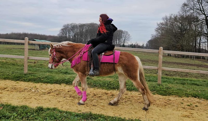 Haflinger-Stute MYRTHE brav, gelassen & ein echtes Freizeitpony • Name: MYRTHE • Rasse: Haflinger • Geschlecht: Stute • Alter: 4 Jahre • Stockmaß: ca. 1,50 • Ausbildungsstand: Freizeitpony, geritten im Gelände • Preis: 5500,- Zum Verkauf steht unser hübsche Haflinger-Stute ehrliche, junge und liebevolle, mit einem charmanten Wesen und seiner coolen Art begeistert. – absolut brav und unkompliziert im täglichen Umgang – ruhig, freundlich und immer gut gelaunt – kennt Kinder, Hunde und Landmaschinen – steht brav beim Putzen, Satteln und Schmied – ein echt tolles Pony, das Freude an der Arbeit und am Miteinander hat Perfekt für: Freizeitreiter, Familien oder die ein treues und freundliches Pony suchen, mit dem man einfach Spaß haben kann. Unsere Pferde: – regelmäßig entwurmt – vom Schmied & Osteopathen betreut -AKU dabei Hofladen: Zubehör, Sättel & Trensen erhältlich Transport auf Wunsch günstig organisiert ✅ Unser Service: – 3 Monate Umtauschrecht – Proberitt: 35 €, jedes weitere Pferd 25 € (beim Kauf am selben Tag angerechnet) – 100 € Sofort-Rabatt bei Abholung/Transport am selben Tag – Persönliche & ehrliche Beratung Anfragen bitte nur telefonisch: 0171 – 4001968 Täglich erreichbar: 8–20 Uhr ⚠️ Keine E-Mail oder WhatsApp ⚠️ Alle Angaben ohne Gewähr