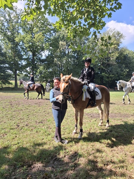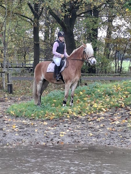 Wij bieden hier een 5-jarig Haflingerstute te koop, met een hoogte van 1,54 m. Ze is zeer talentvol en leergierig, en is met veel liefde opgeleid. Op 4-jarige leeftijd heeft ze de merriescompetitie met een score van 7,98 succesvol afgerond, en behaalde onder een externe ruiter een rijvaardigheidsscore van 8,5. Hierdoor ontving ze de federatiepremie. Vervolgens heeft ze op 4- en 5-jarige leeftijd dressuurproeven gelopen, en op 5-jarige leeftijd is ze gestart in de klasse L dressuur. Ze heeft meteen gewonnen en geplaatst in het springen. Dit paard is ideaal voor ruiters die een rijbewijs willen behalen. Ik heb met haar ook al hindernissen in het terrein gesprongen. Thuis trainen we met haar op springen tot 1,10 m, en met verdere training kan Sternfee (zo heet de merrie) volgend jaar deelnemen aan A-springen. Deze merrie is ook al enkele keren met een tweespannen gereden. De moeder van de merrie staat bij ons in de buurt en kan bezichtigd worden; zij is ook zeer mooi gereden en gereden (maar niet te koop). Bij interesse kunt u het beste telefonisch contact met mij opnemen via 015117670724. Ik kan ook aanvullende video’s sturen via WhatsApp. Hartelijke groeten, Rita Bruns