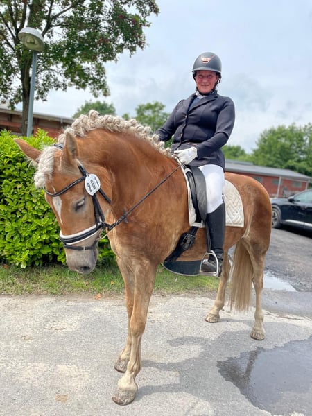 We are offering a 5-year-old Haflinger mare standing at 15.4 hands. She is a very talented and trainable mare, lovingly brought up and trained. At 4 years old, she passed the mare performance test with a score of 7.98 and received an 8.5 in riding ability under a different rider, earning her the Verband’s premium. She has also competed in dressage young horse classes at ages 4 and 5, and at 5 years old, she started in the A-level dressage tests. She immediately won and placed in E jumping competitions. She would be an ideal horse for a rider aiming to obtain their riding badge. I have also jumped cross-country obstacles with her. In training at home, we currently jump up to 1.10 m, and with further training, Sternfee (her name) could be introduced to A-level show jumping next year. She has also been driven in single and double harness. The dam is nearby and can be visited; she is also very well ridden and driven (not for sale). If interested, please contact me by phone at 015117670724. I can also send additional videos via WhatsApp. Best regards, Rita Bruns